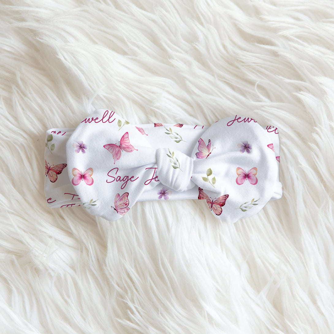 Add a touch of sweetness to any outfit with our bow headband. Made from soft, stretchy fabric, it’s gentle on baby’s delicate skin and stays comfortably in place all day long.