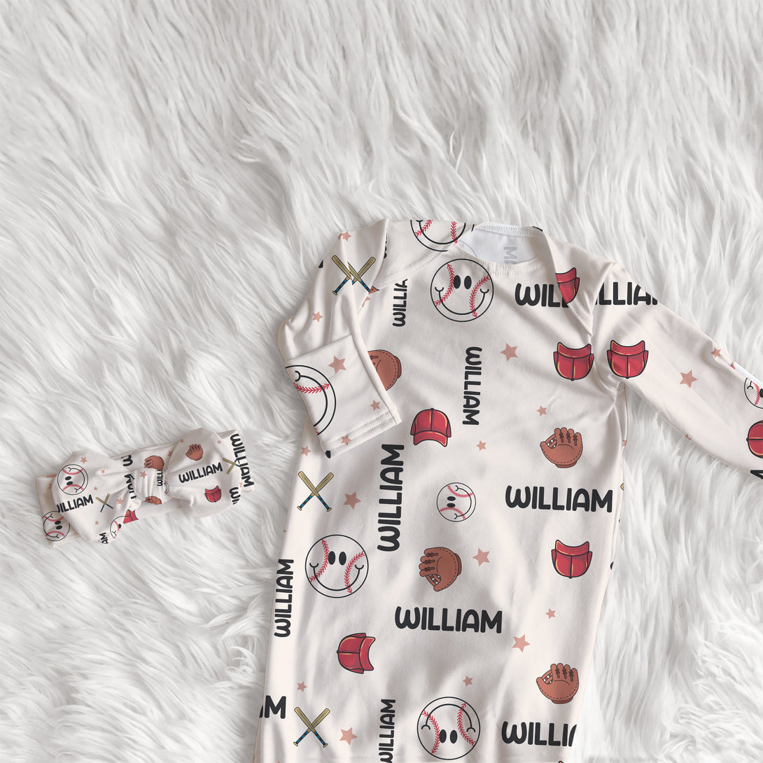 Baseball Personalized Newborn Sleep Gown