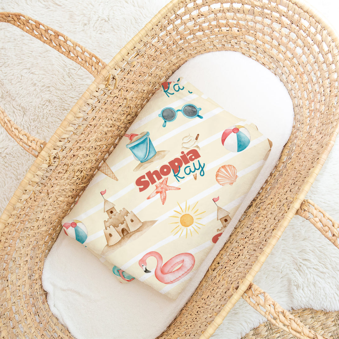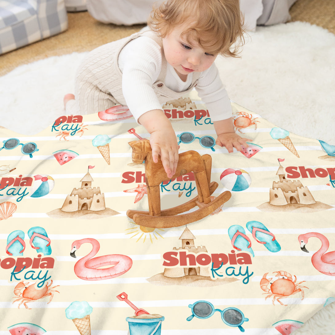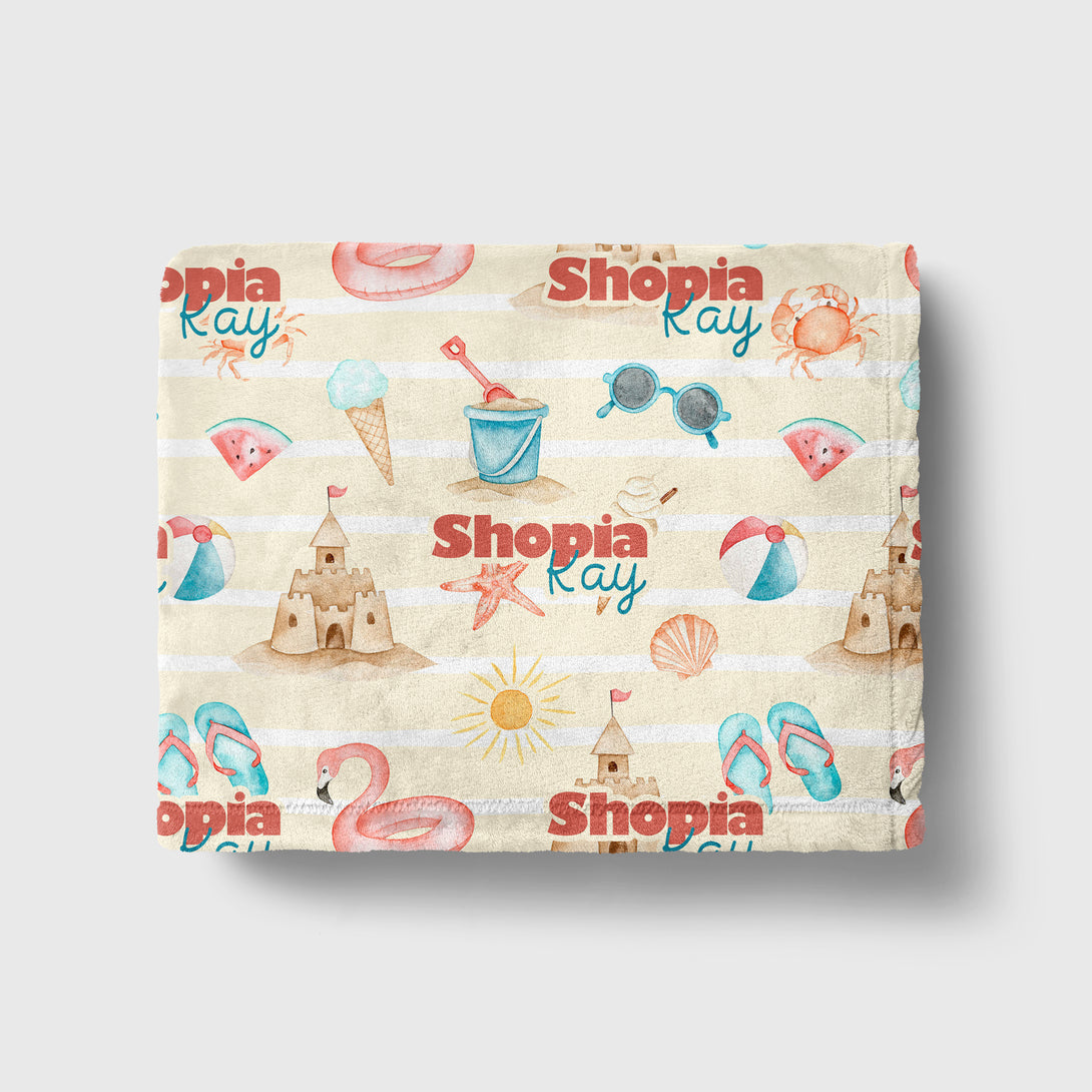 Summer Beach Personalized Minky Blanket