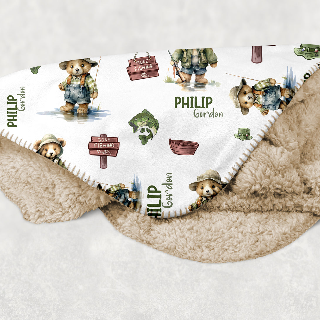 - Material: Minky style fleece with sherpa lining. Whip stitch edging, super-soft sherpa lining