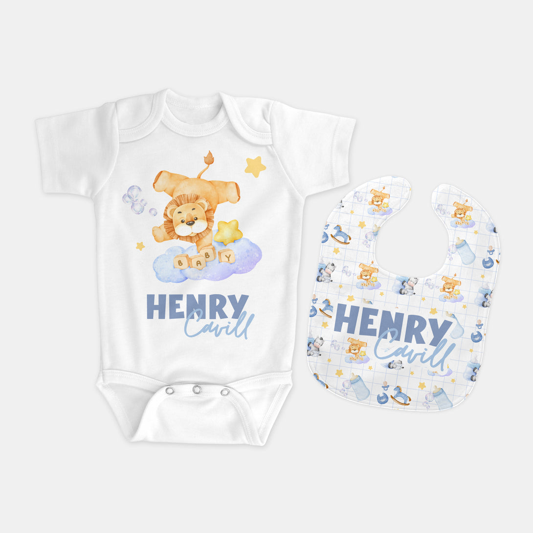 Blue Milk Drunk Personalized Bib and Burp Cloth Set
