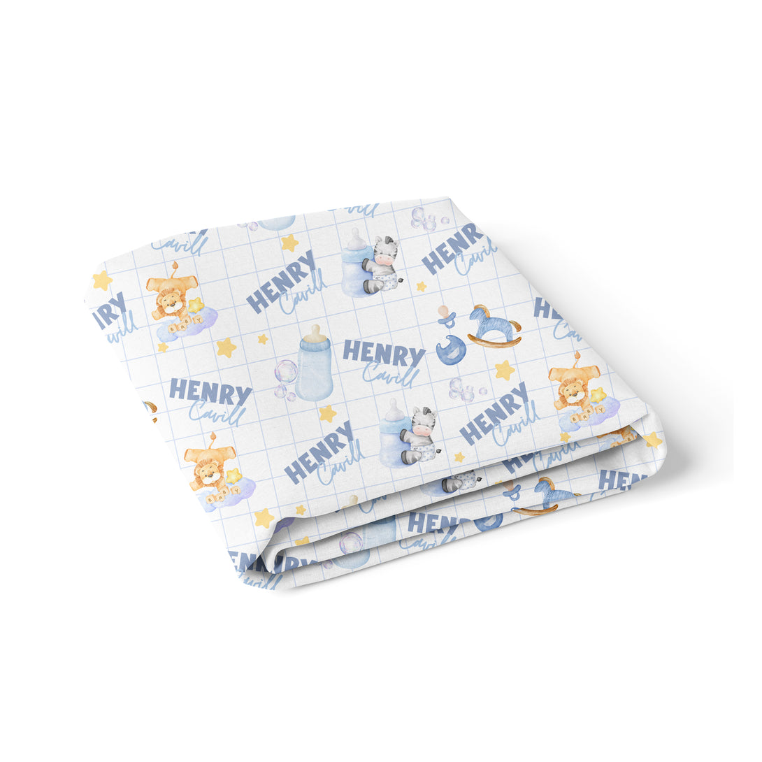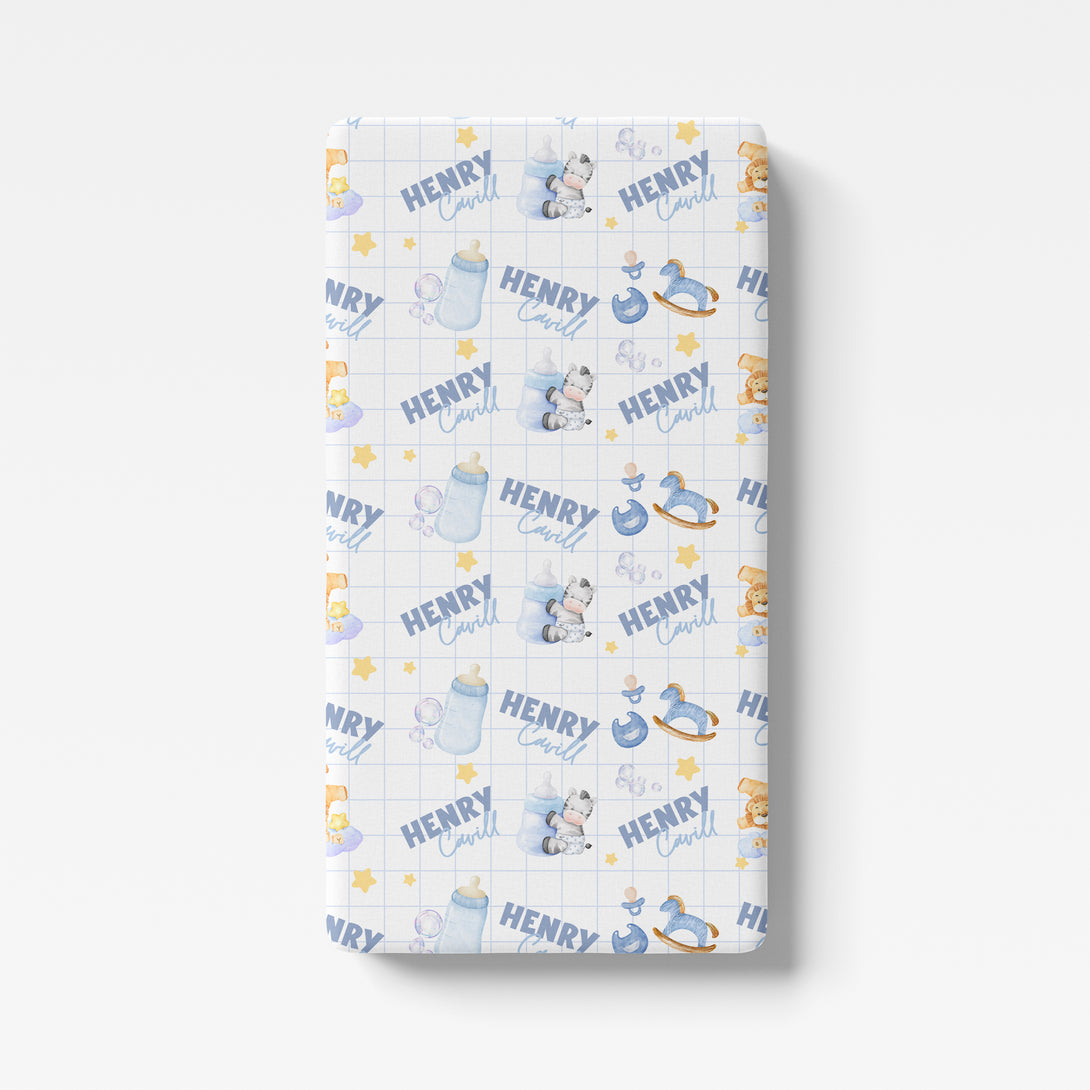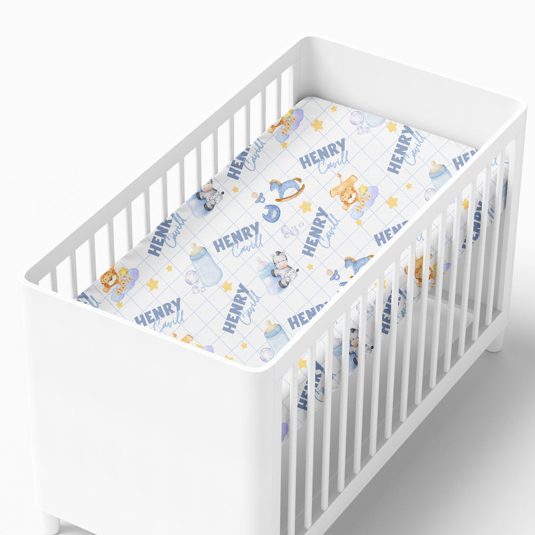 Blue Milk Drunk Personalized Crib Sheet