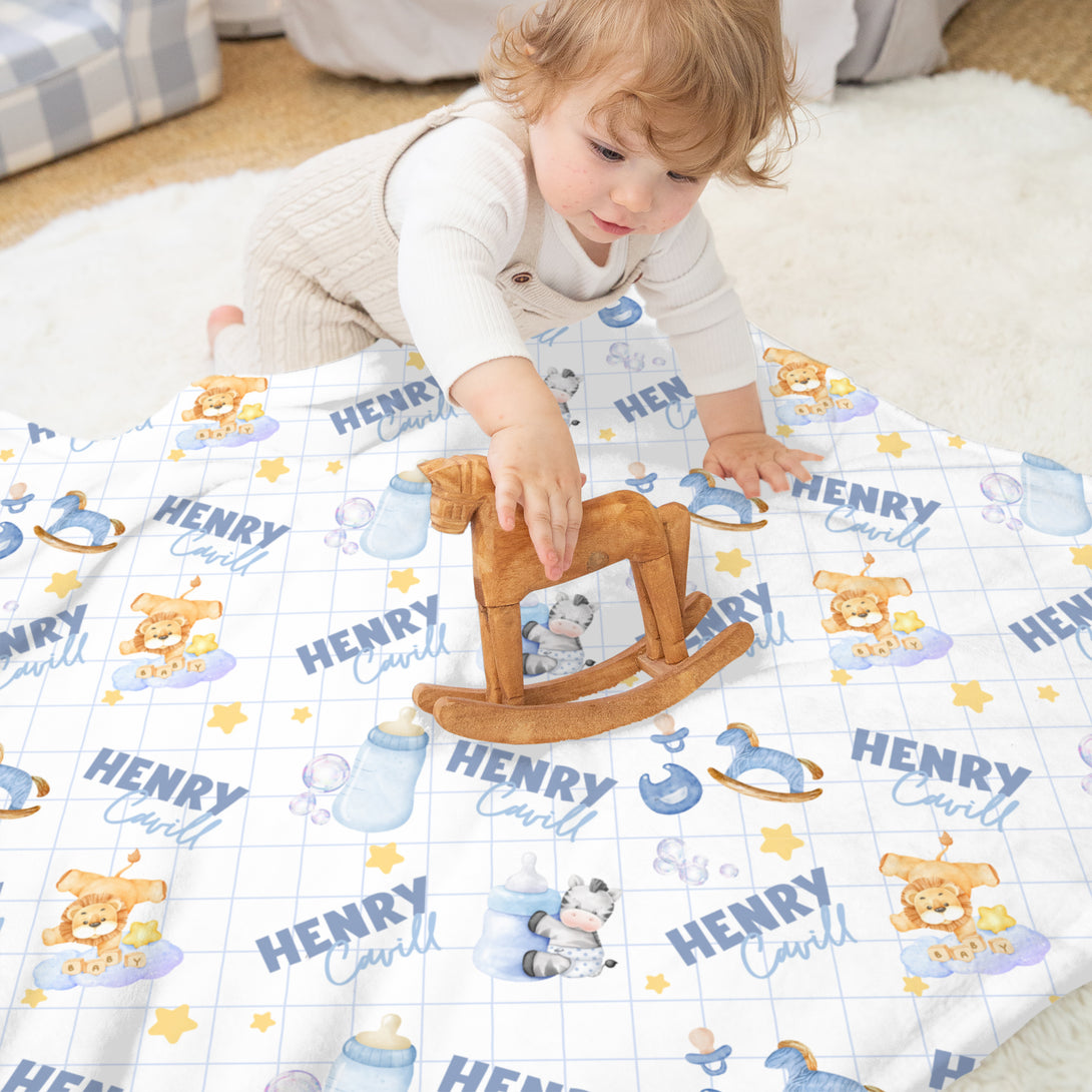 Blue Milk Drunk Personalized Kids Minky Blanket