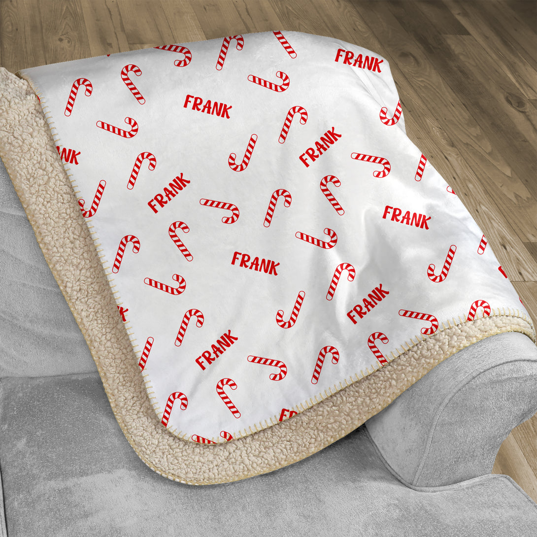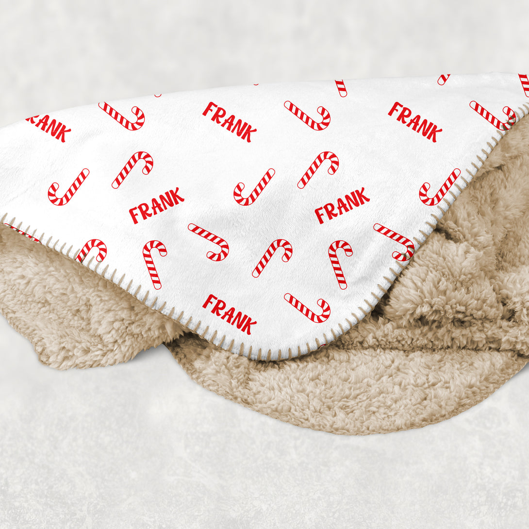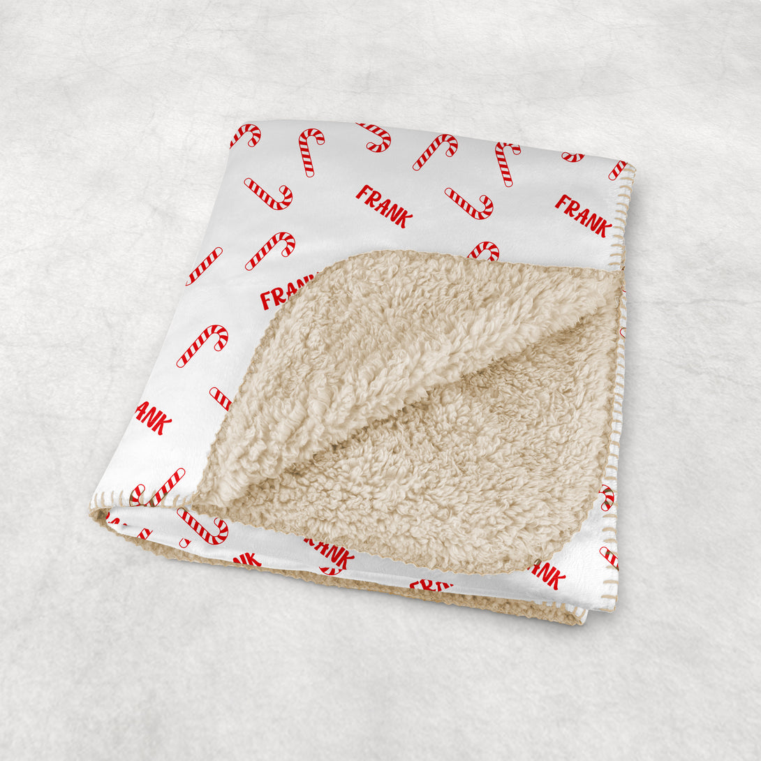 - Material: Minky style fleece with sherpa lining. Whip stitch edging, super-soft sherpa lining