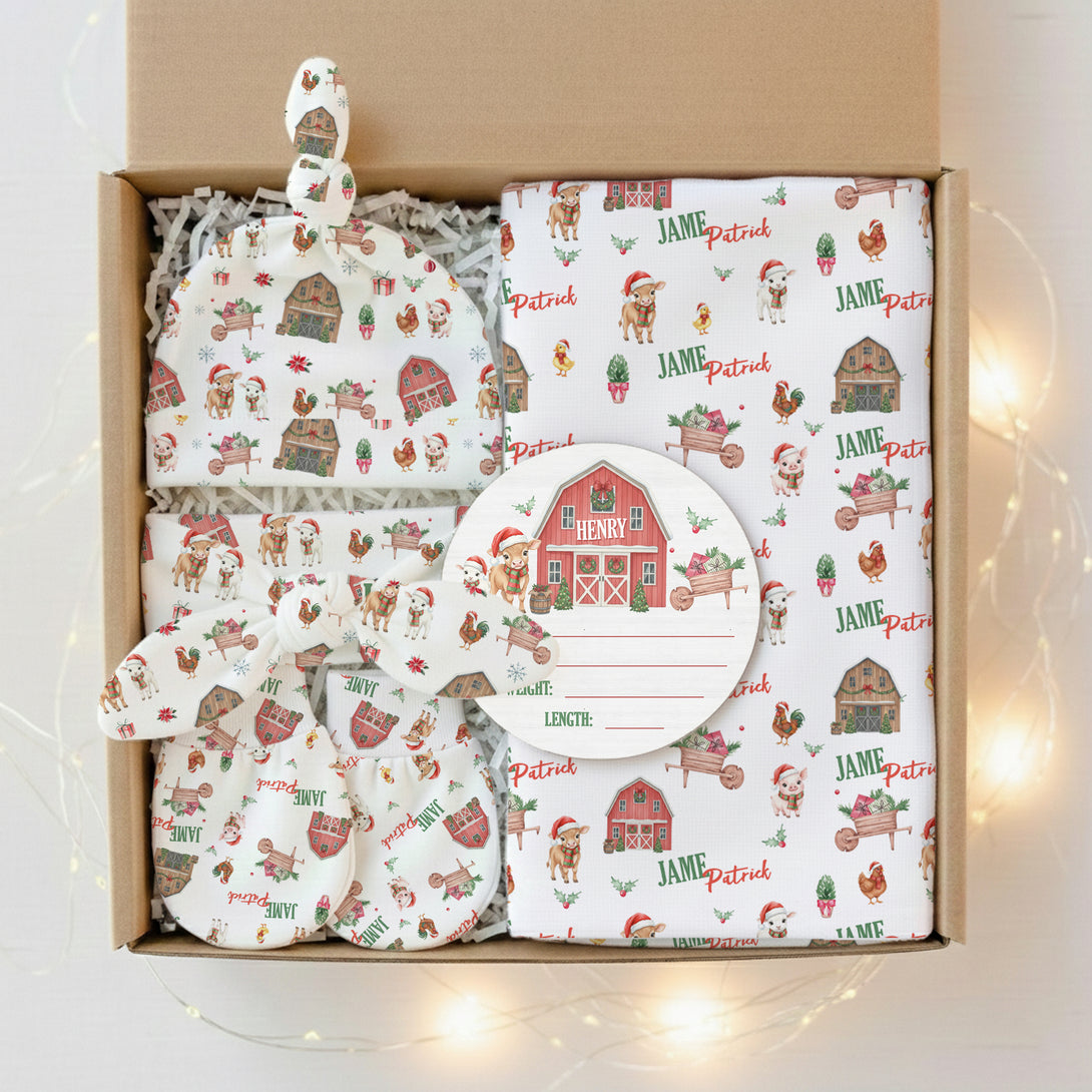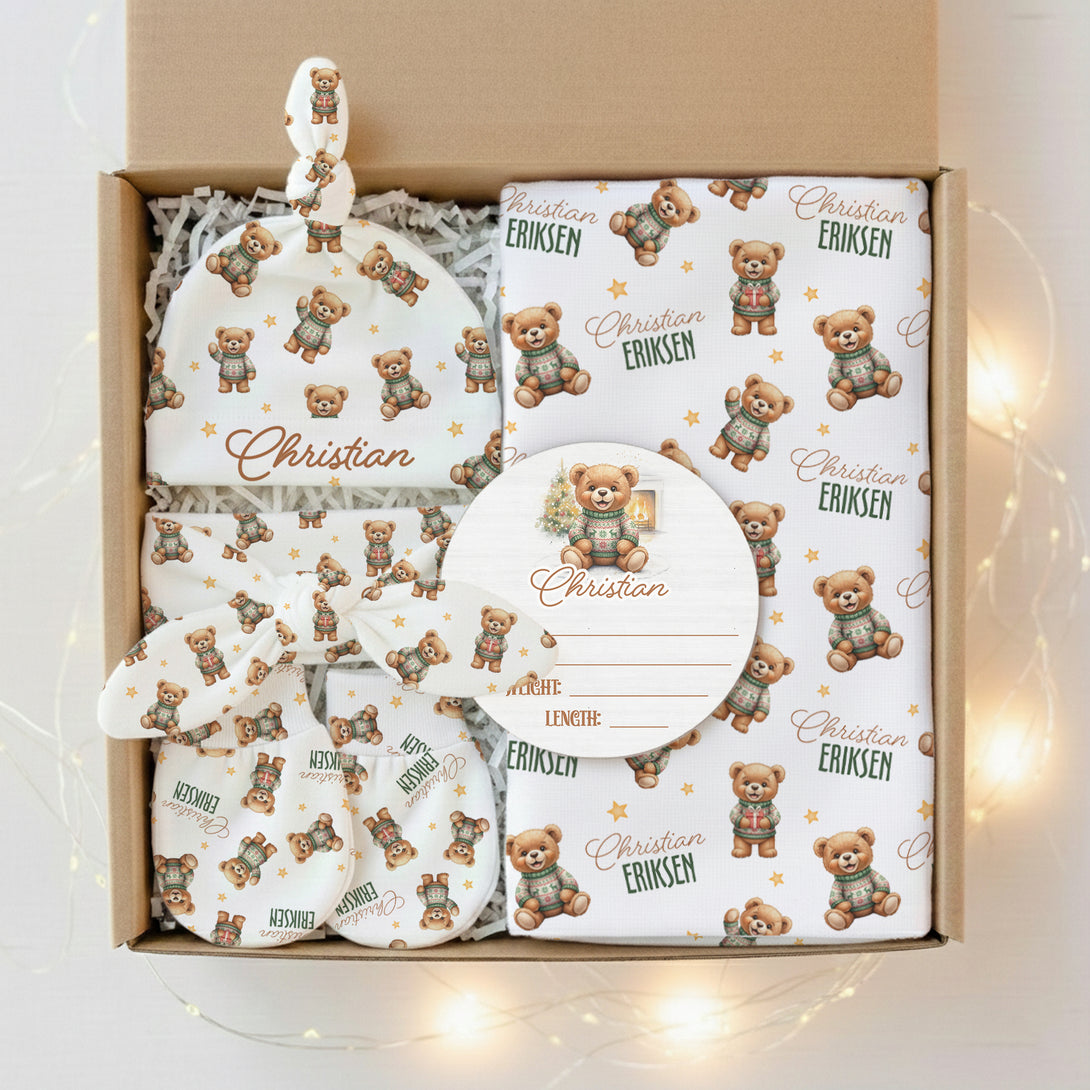 A sweet, gender-neutral newborn gift set designed to wrap life’s very first days in warmth and love. This adorable set includes a soft swaddle blanket, a tiny accessory (you can choose knotted hat or headband), a birth stats announcement woodsign and matching mittens—simple, timeless essentials every new parent reaches for again and again. Each piece is thoughtfully crafted for those precious early moments, offering ease, comfort, and everyday practicality for newborns. With a personalized name added to create a truly meaningful touch, this set becomes more than just clothing—it becomes a keepsake. Perfect for welcoming a new baby, celebrating a surprise arrival, or gifting parents who adore gentle neutrals. A tender way to say, “Hello, little one.”