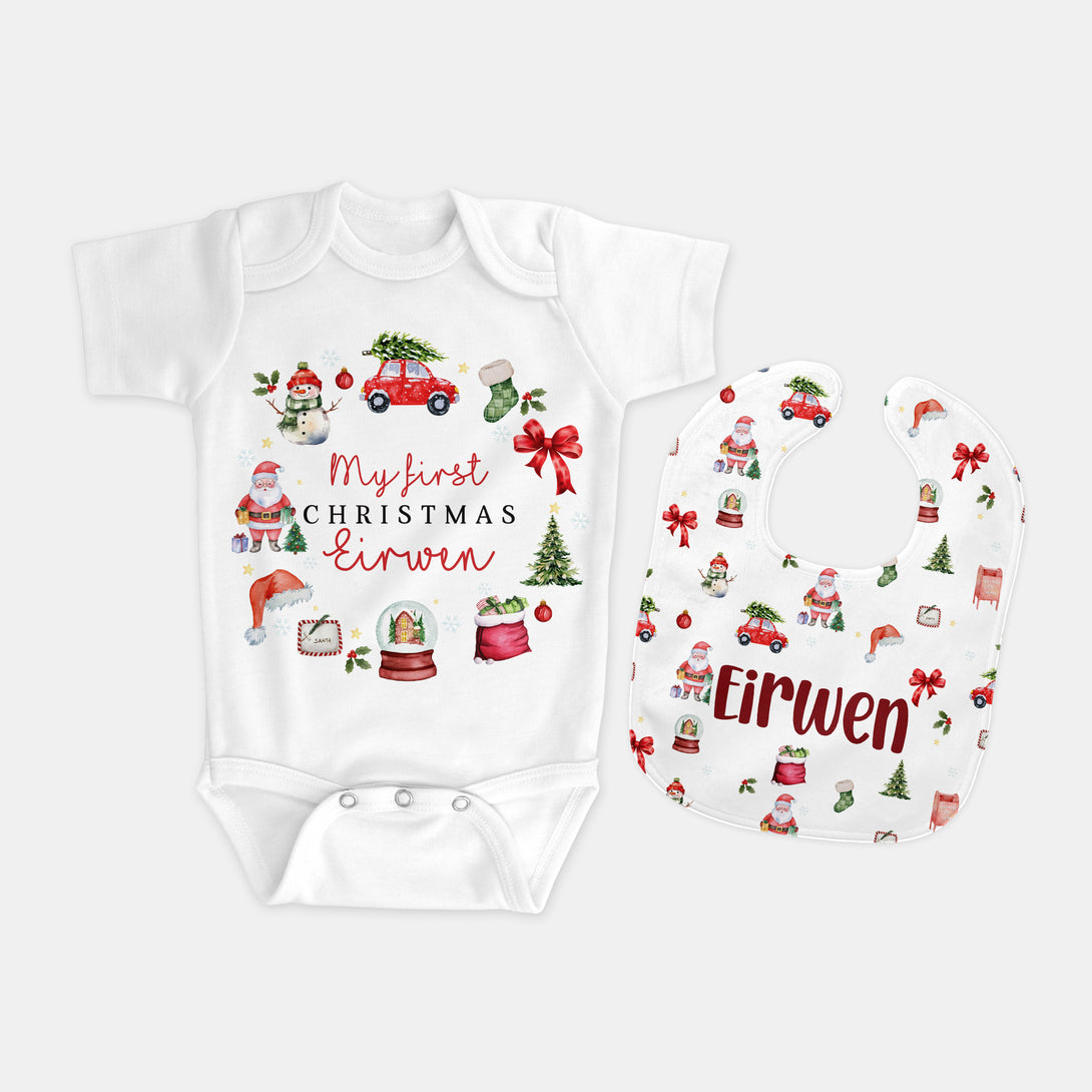 Christmas Day Personalized Bib and Burp Cloth Set