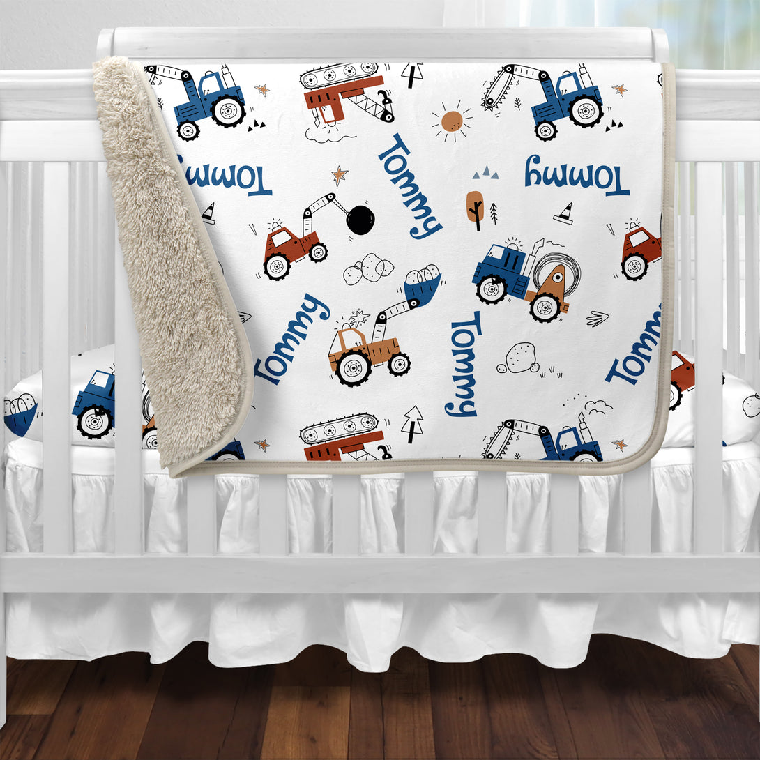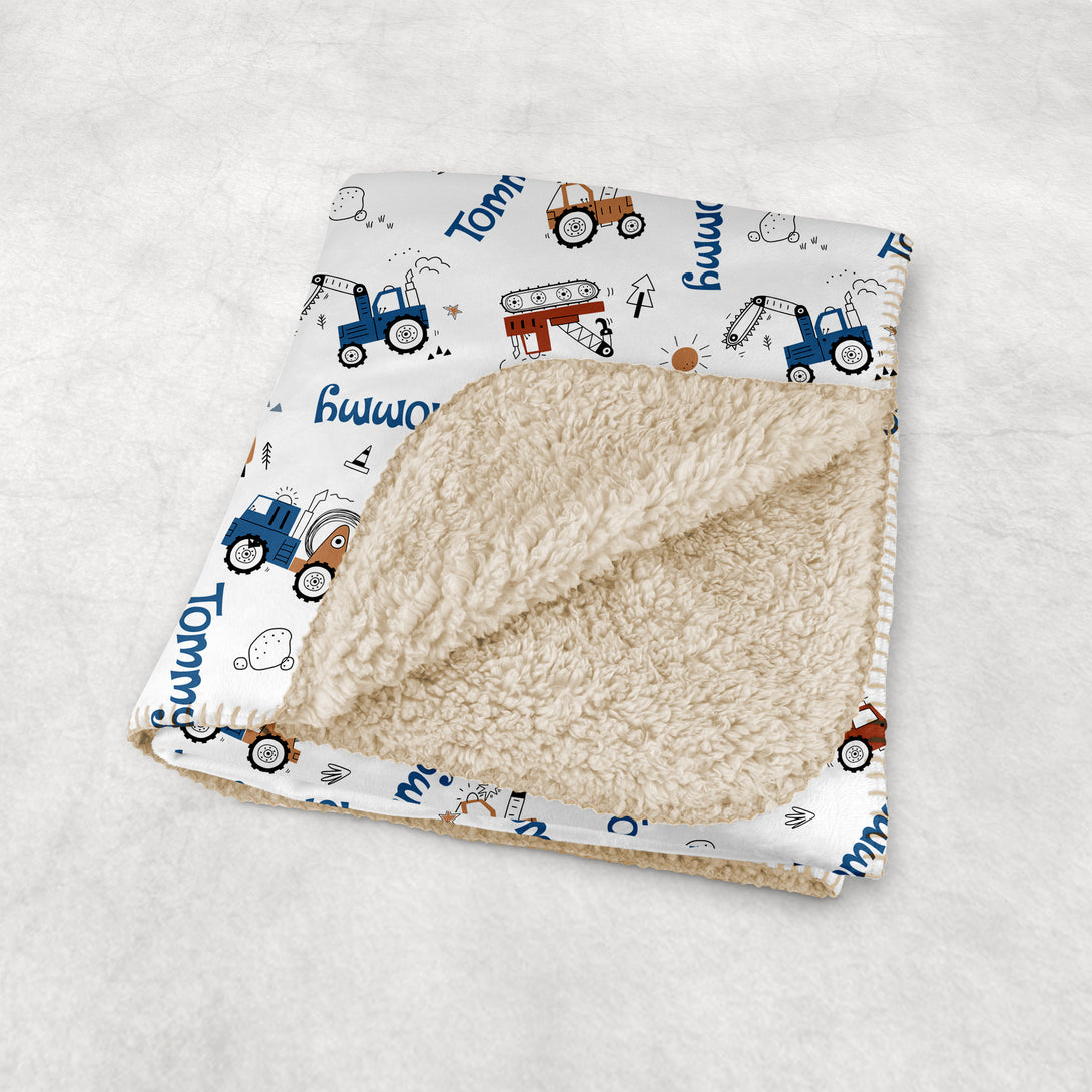- Material: Minky style fleece with sherpa lining. Whip stitch edging, super-soft sherpa lining