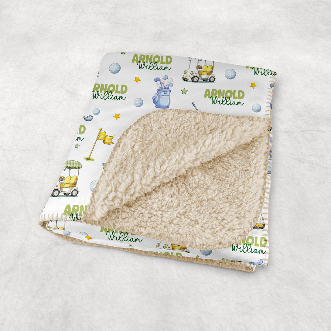 - Material: Minky style fleece with sherpa lining. Whip stitch edging, super-soft sherpa lining