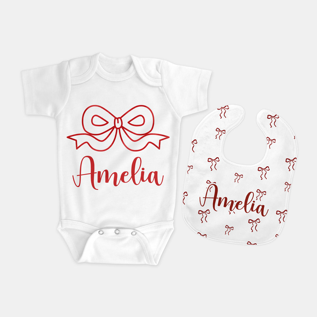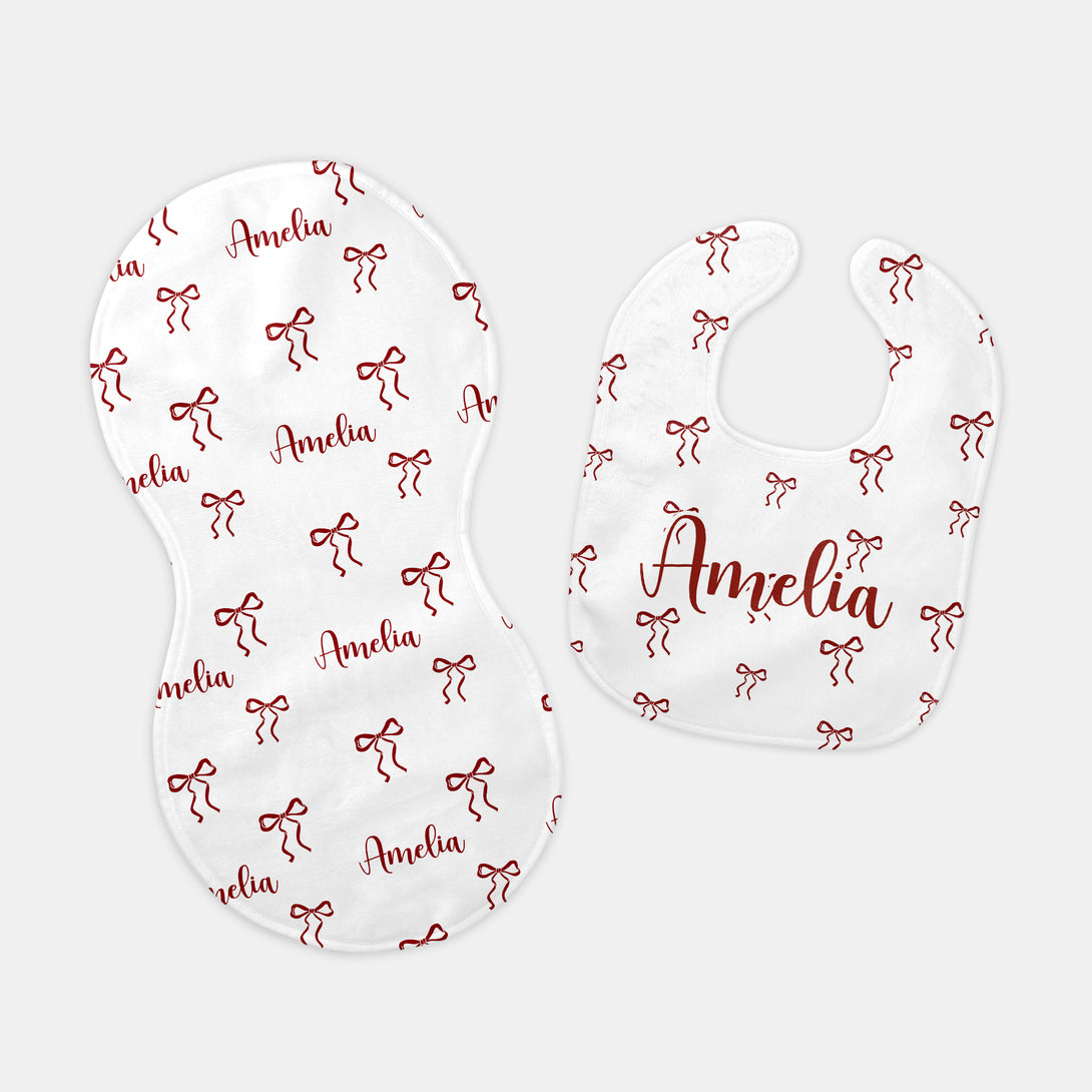 Coquette Ribbon Personalized Bib and Burp Cloth Set