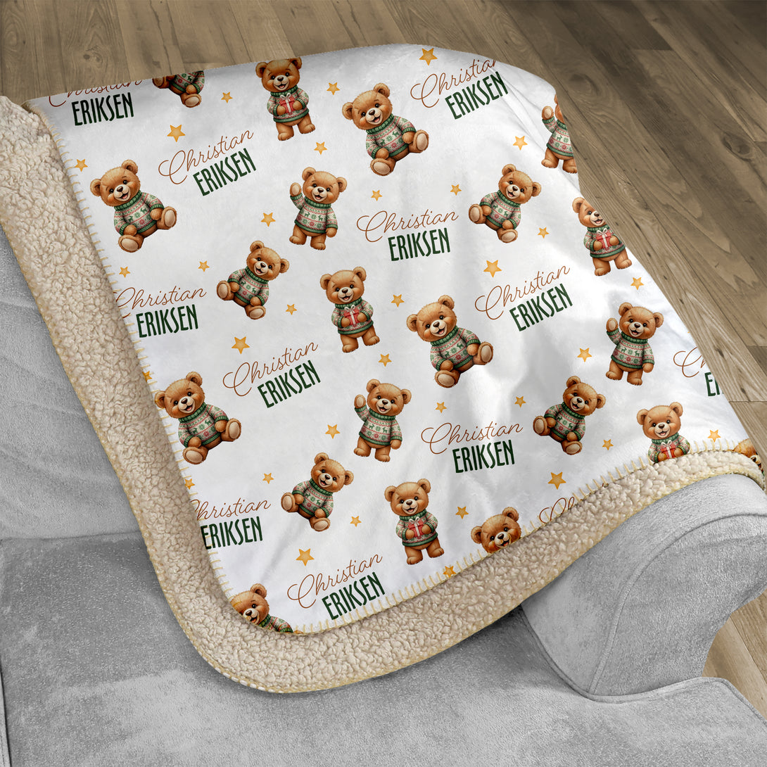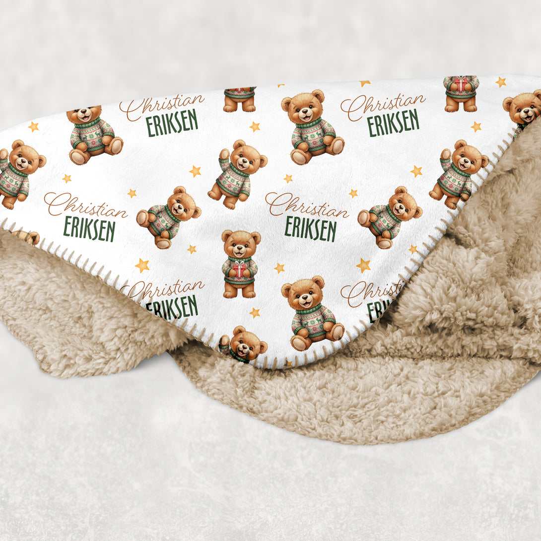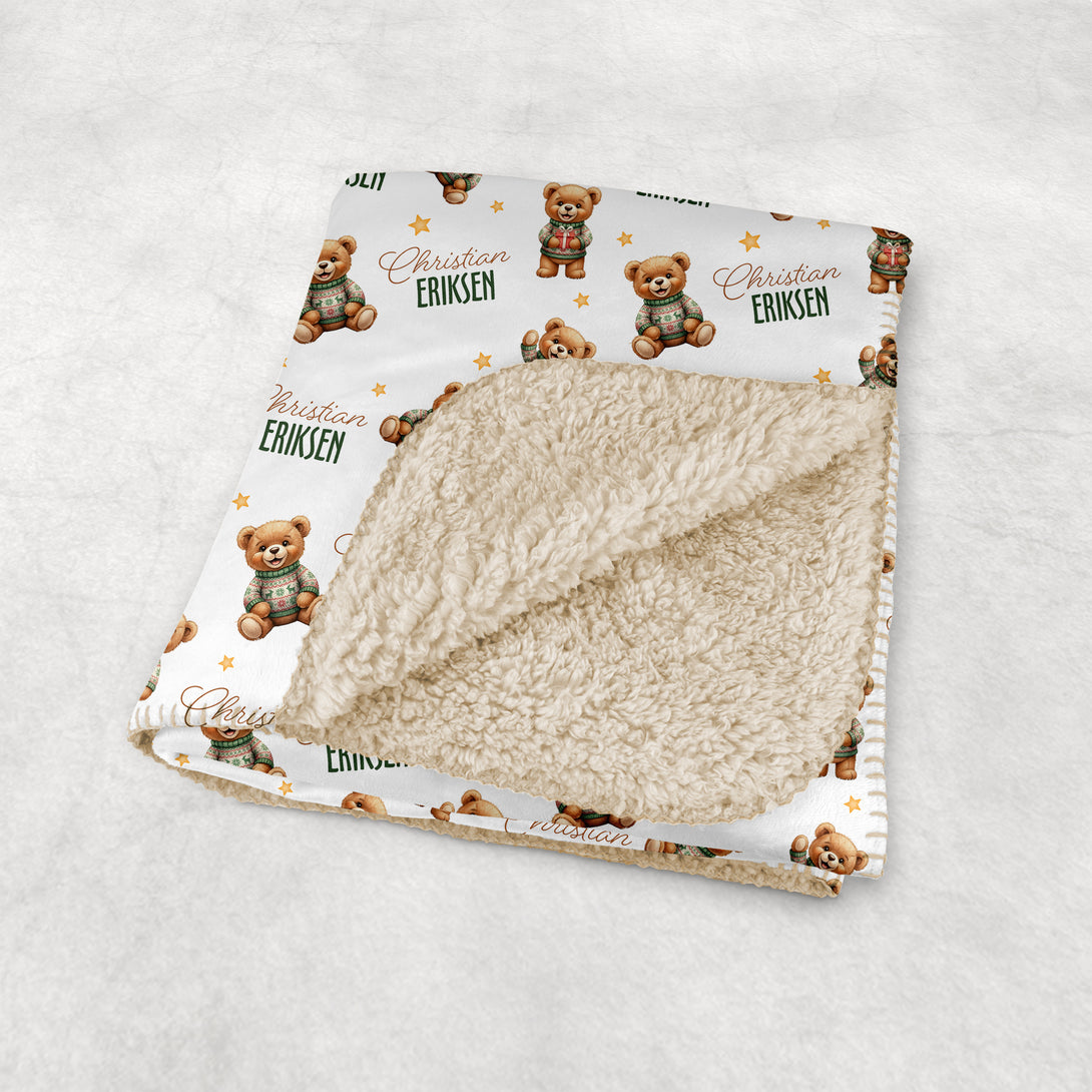 - Material: Minky style fleece with sherpa lining. Whip stitch edging, super-soft sherpa lining