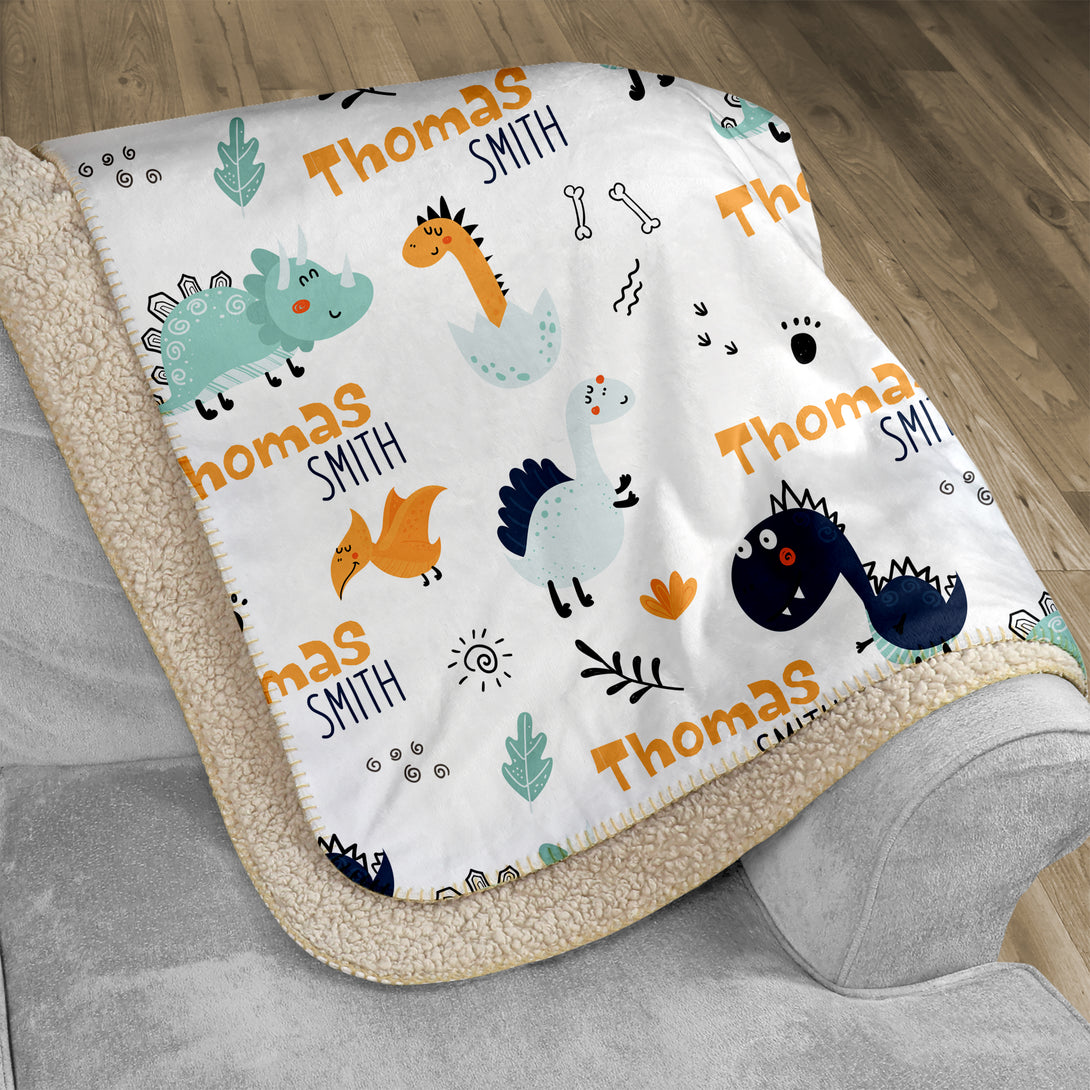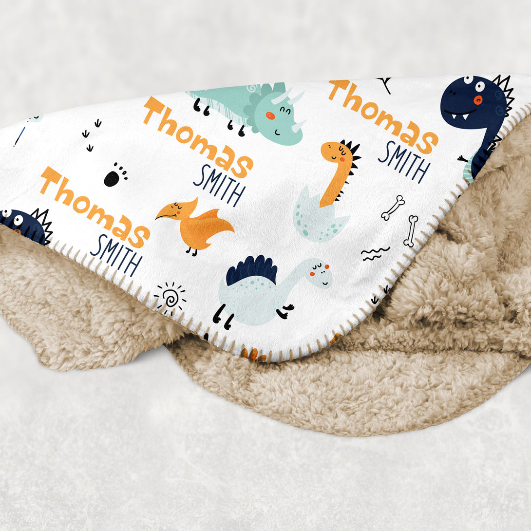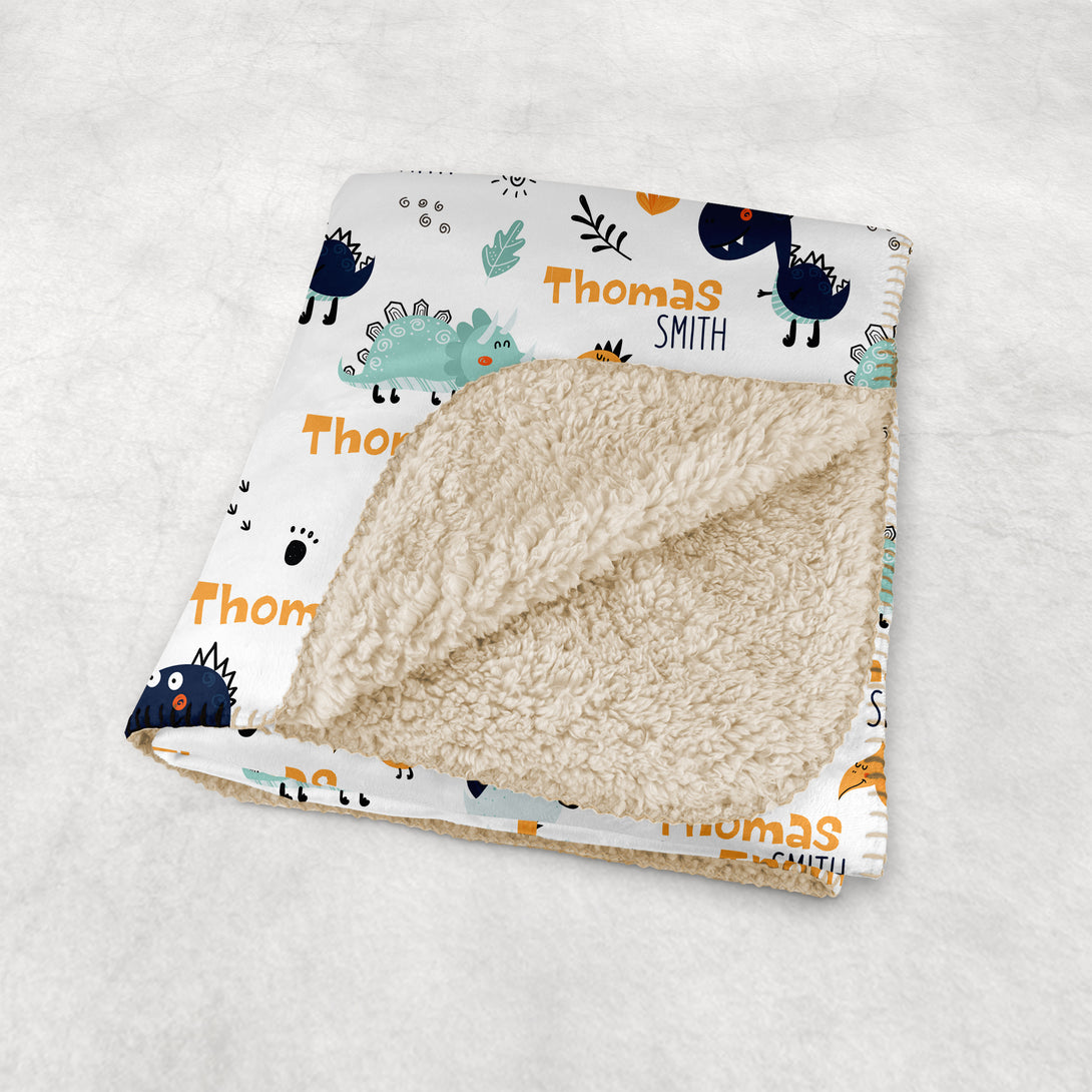 - Material: Minky style fleece with sherpa lining. Whip stitch edging, super-soft sherpa lining