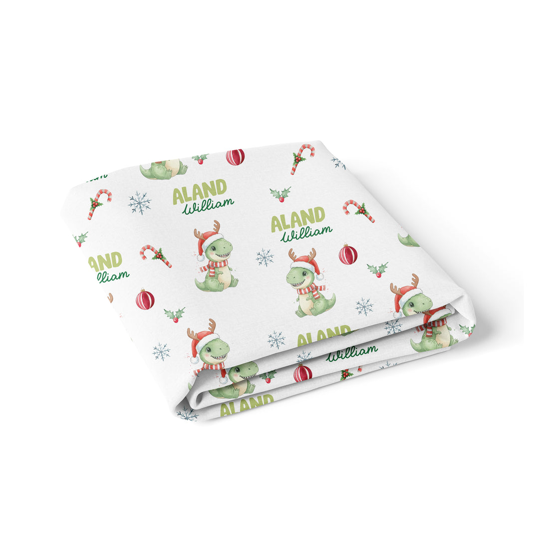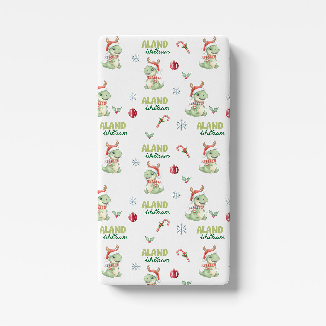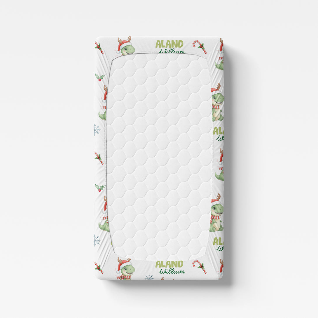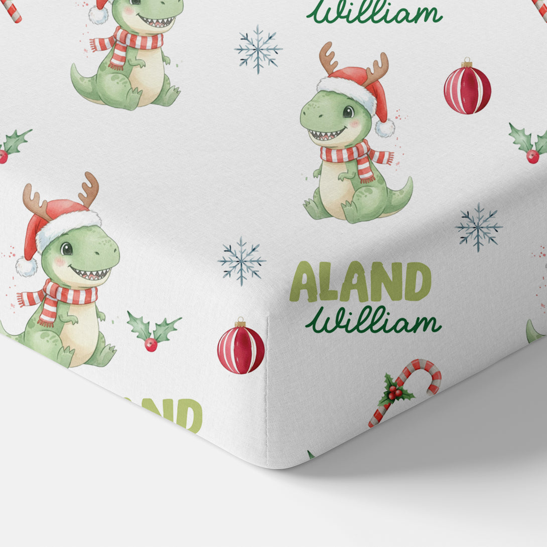Dinosaur's Christmas Personalized Crib Sheet