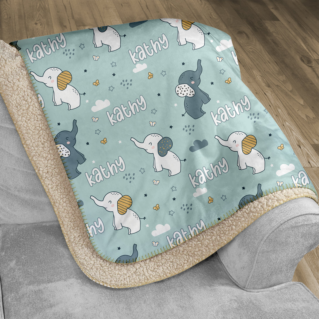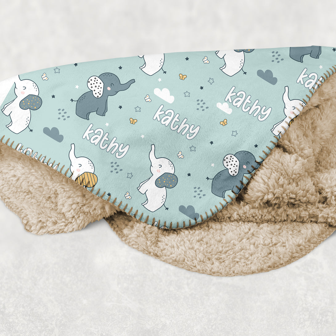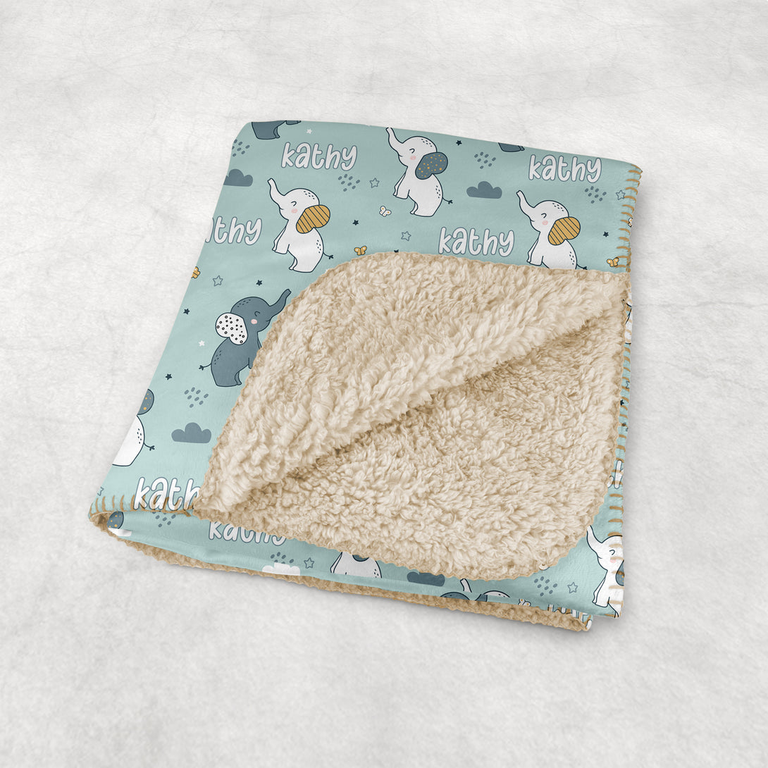 - Material: Minky style fleece with sherpa lining. Whip stitch edging, super-soft sherpa lining