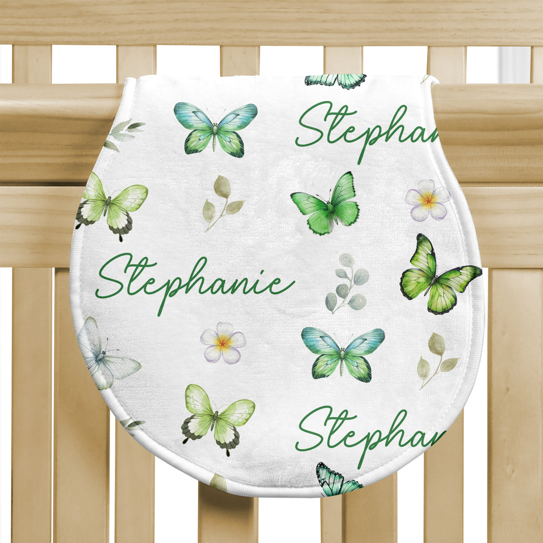 Green Butterfly Personalized Bib and Burp Cloth Set