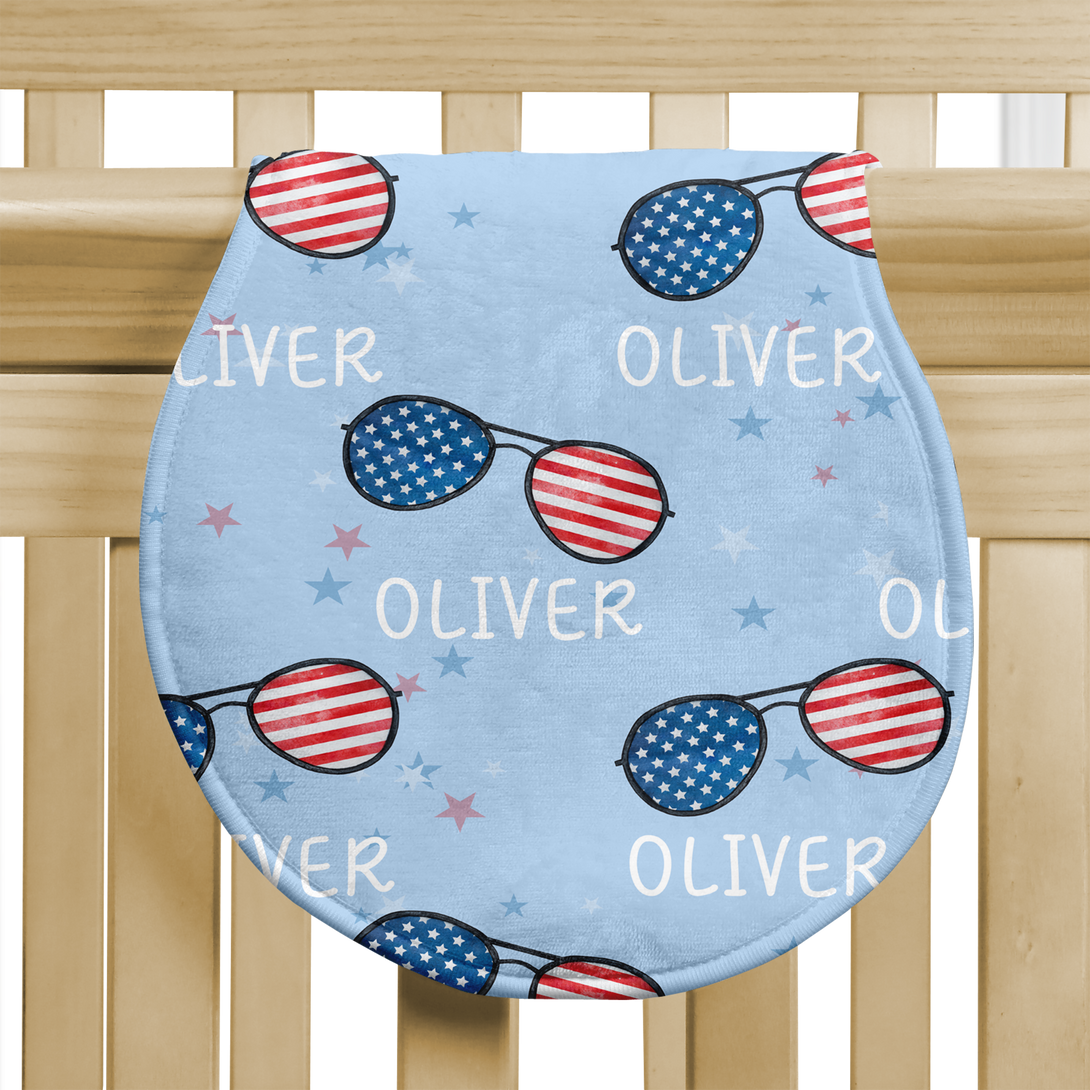 Patriotic Stars Stripes Personalized Bib and Burp Cloth Set