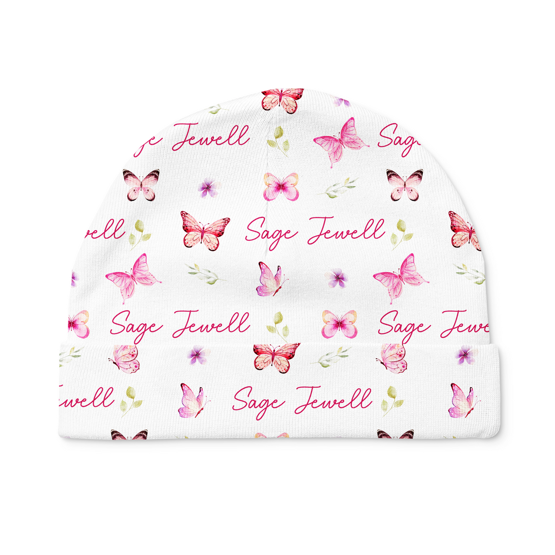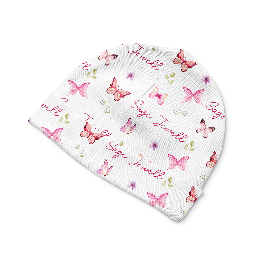 Pink Butterfly Personalized Beanie Hat