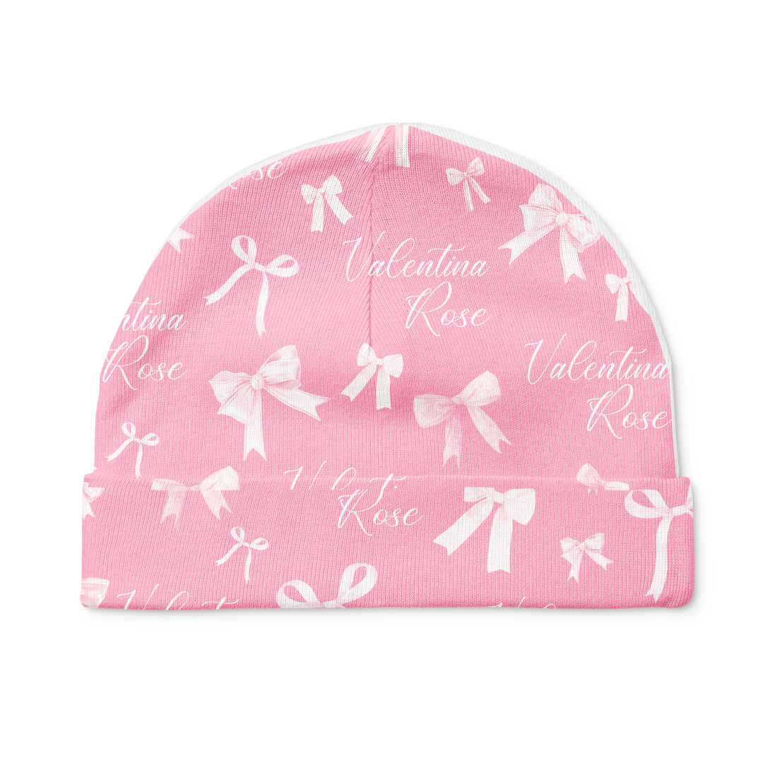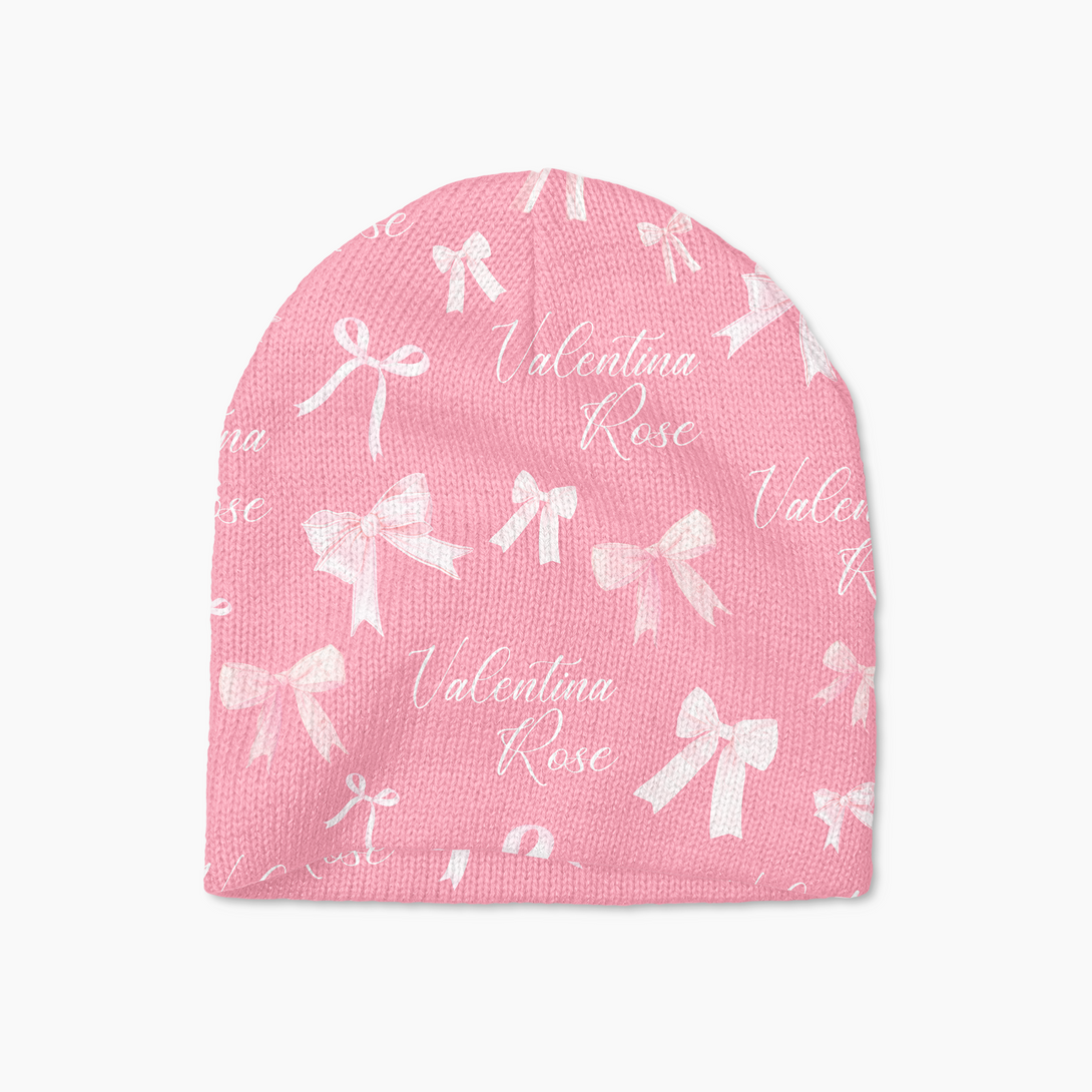 Pink Coquette Bow Personalized Beanie Hat