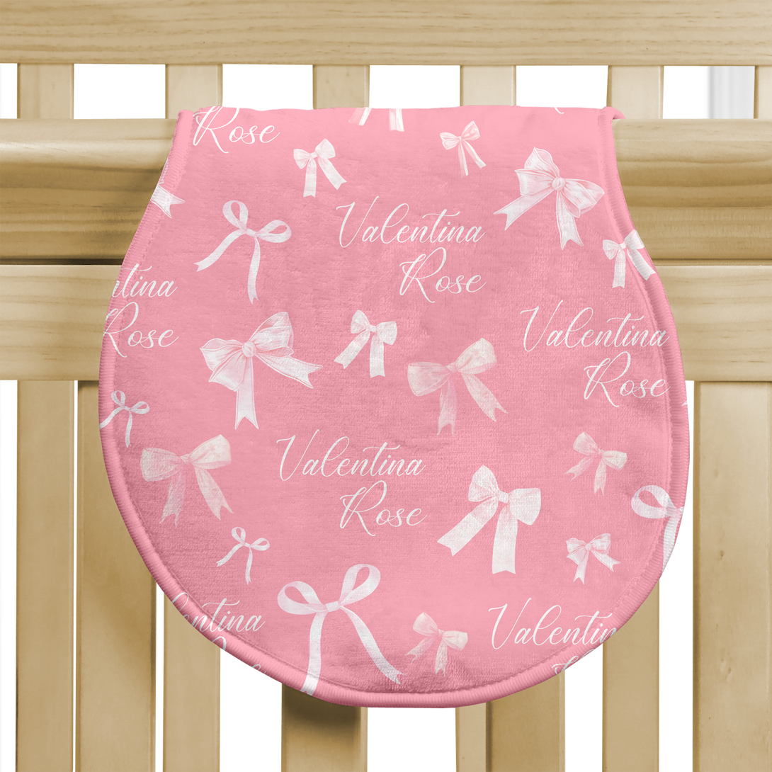 Pink Coquette Bow Personalized Bib and Burp Cloth Set