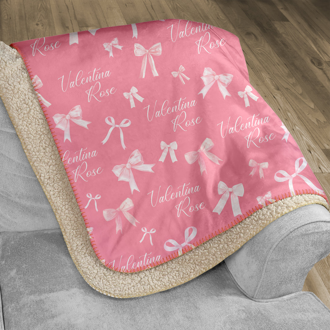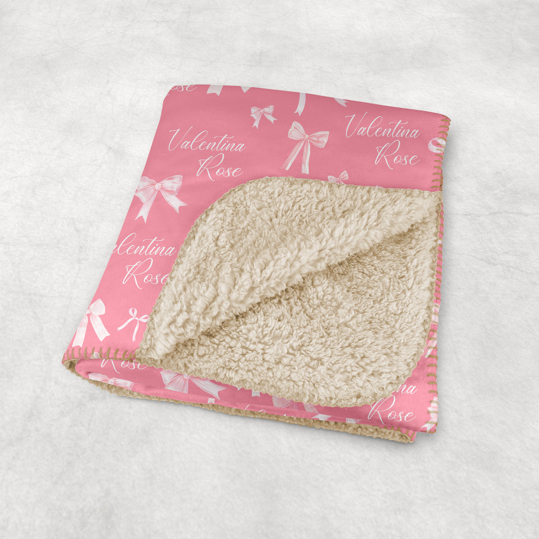 - Material: Minky style fleece with sherpa lining. Whip stitch edging, super-soft sherpa lining