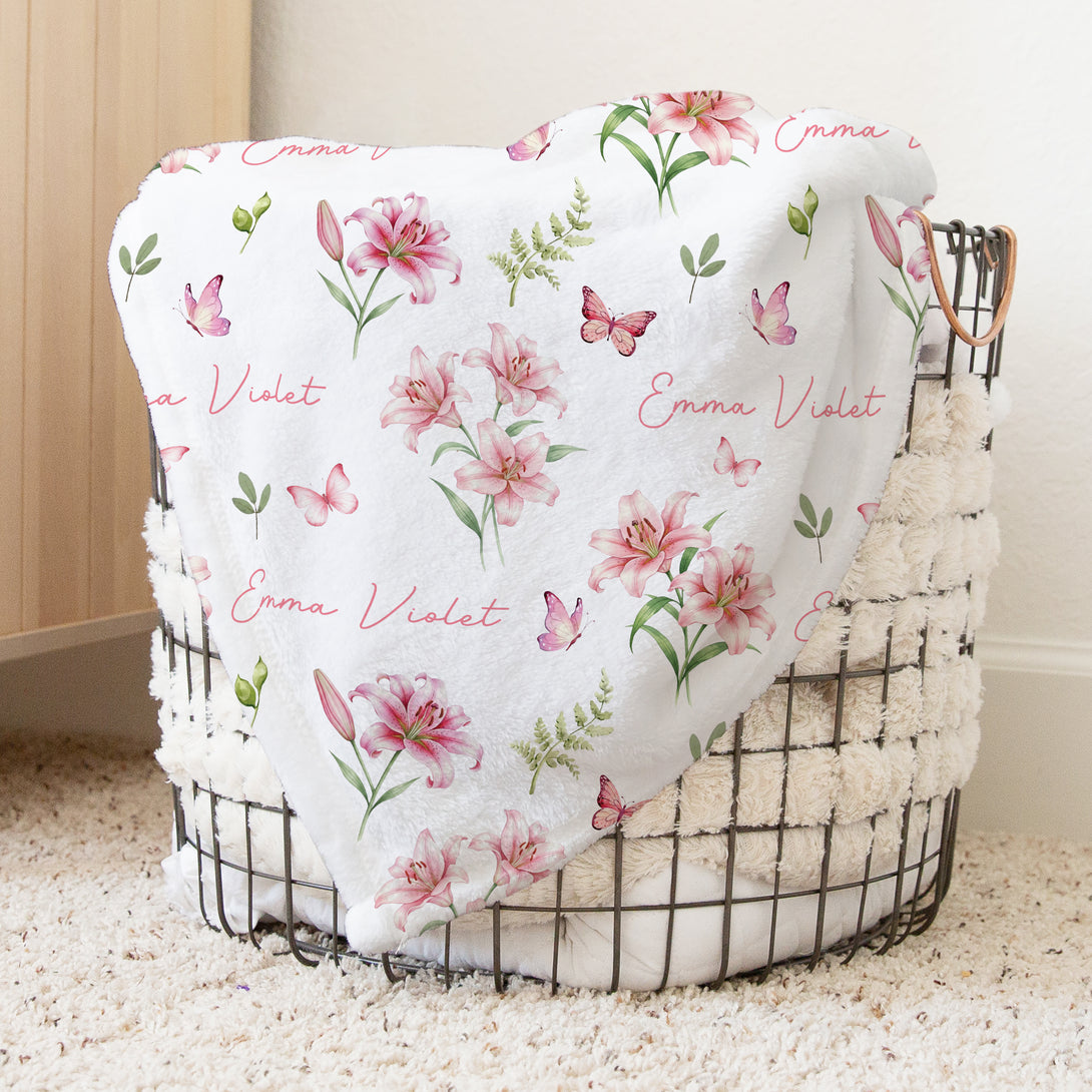 Pink Lilys Personalized Kids Minky Blanket