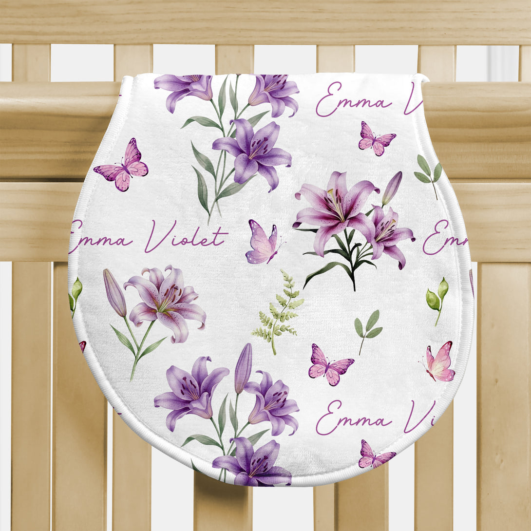 Purple Lilys Personalized Bib and Burp Cloth Set