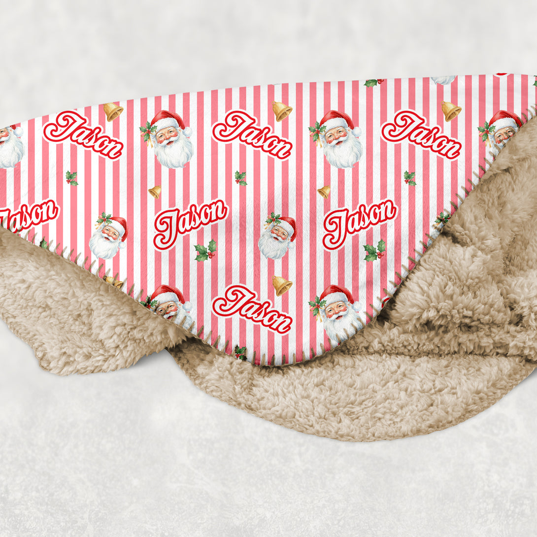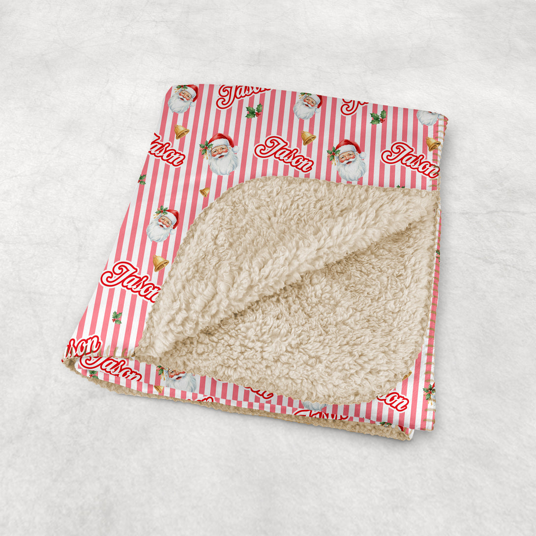 - Material: Minky style fleece with sherpa lining. Whip stitch edging, super-soft sherpa lining