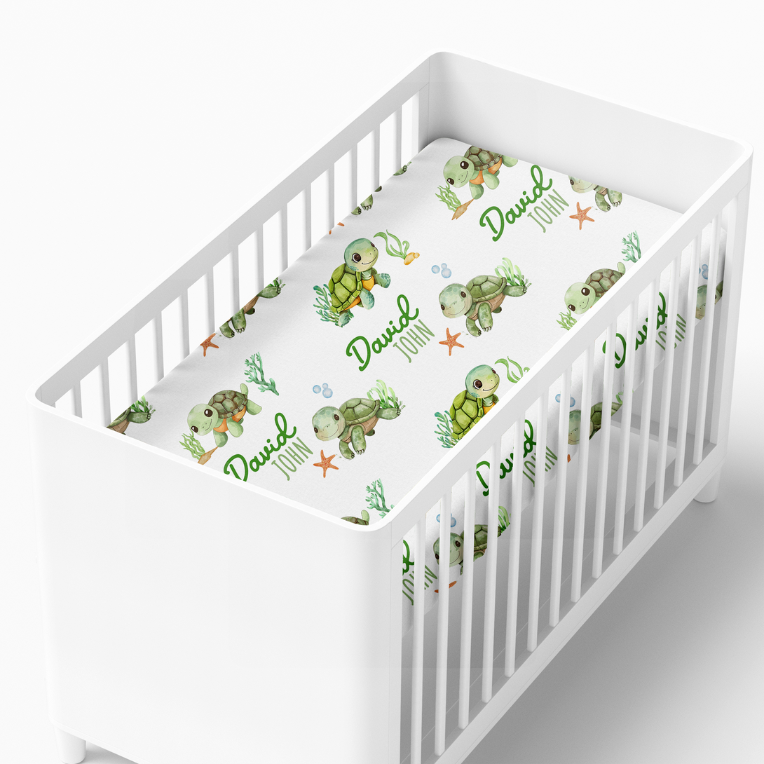 Sea Turtle Personalized Crib Sheet