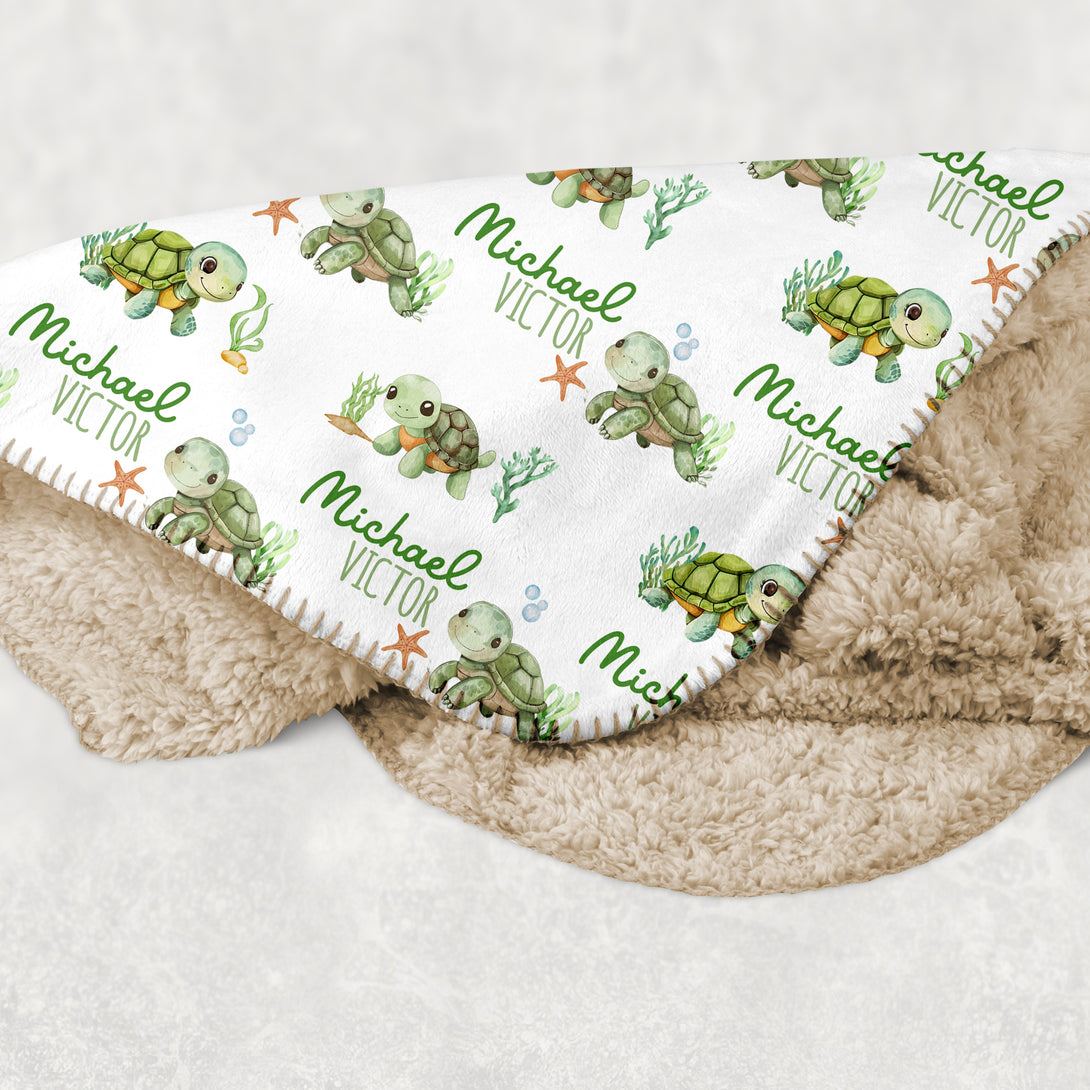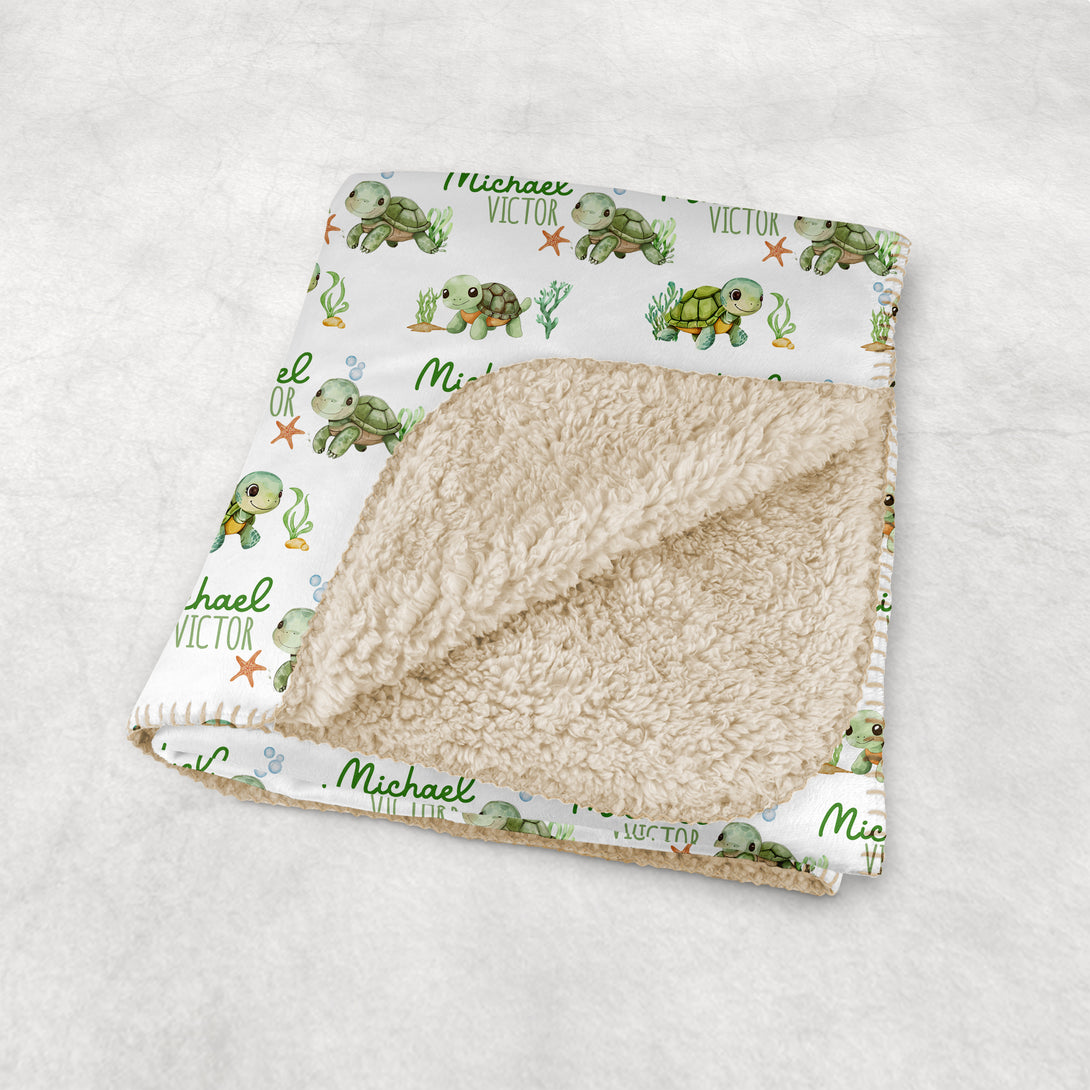 - Material: Minky style fleece with sherpa lining. Whip stitch edging, super-soft sherpa lining