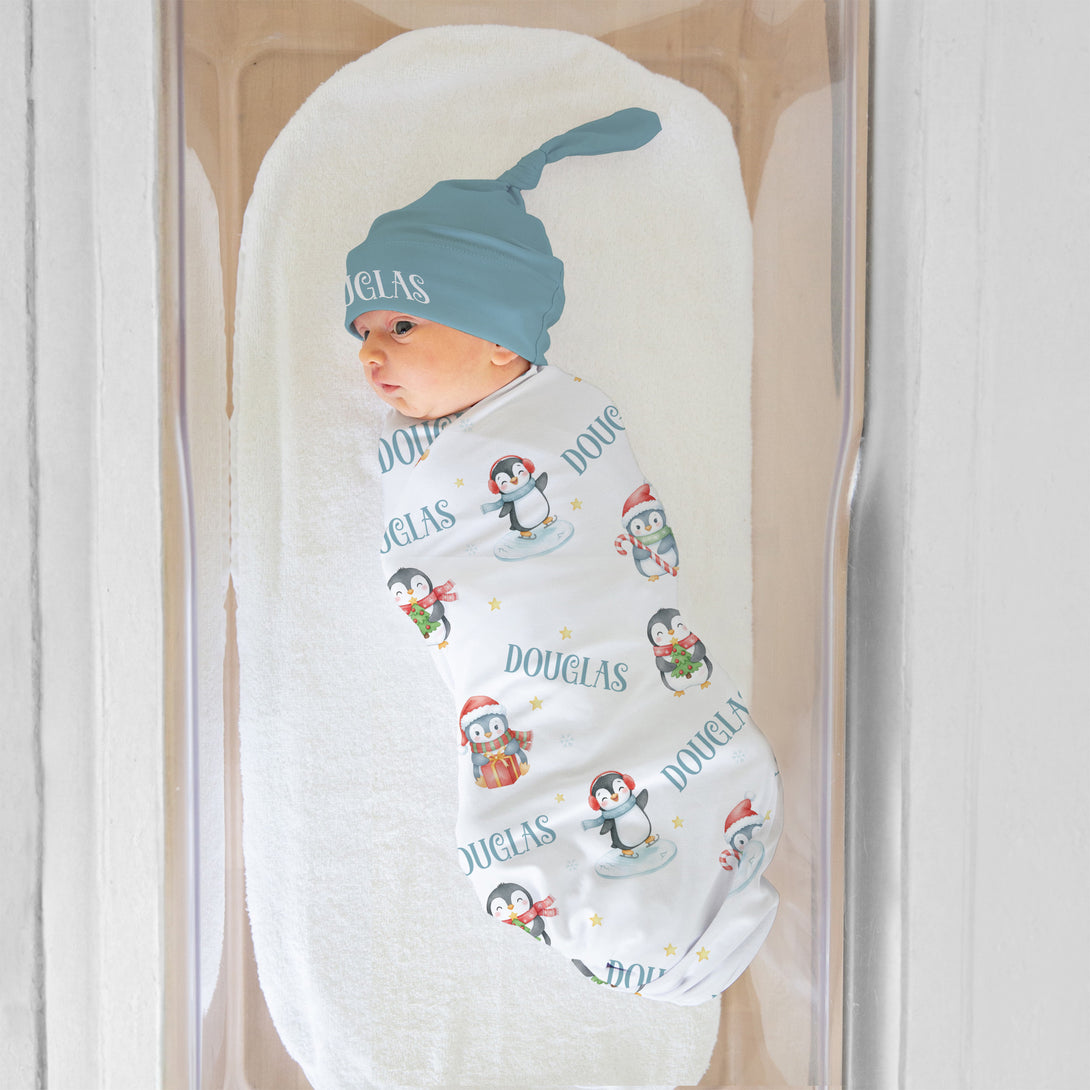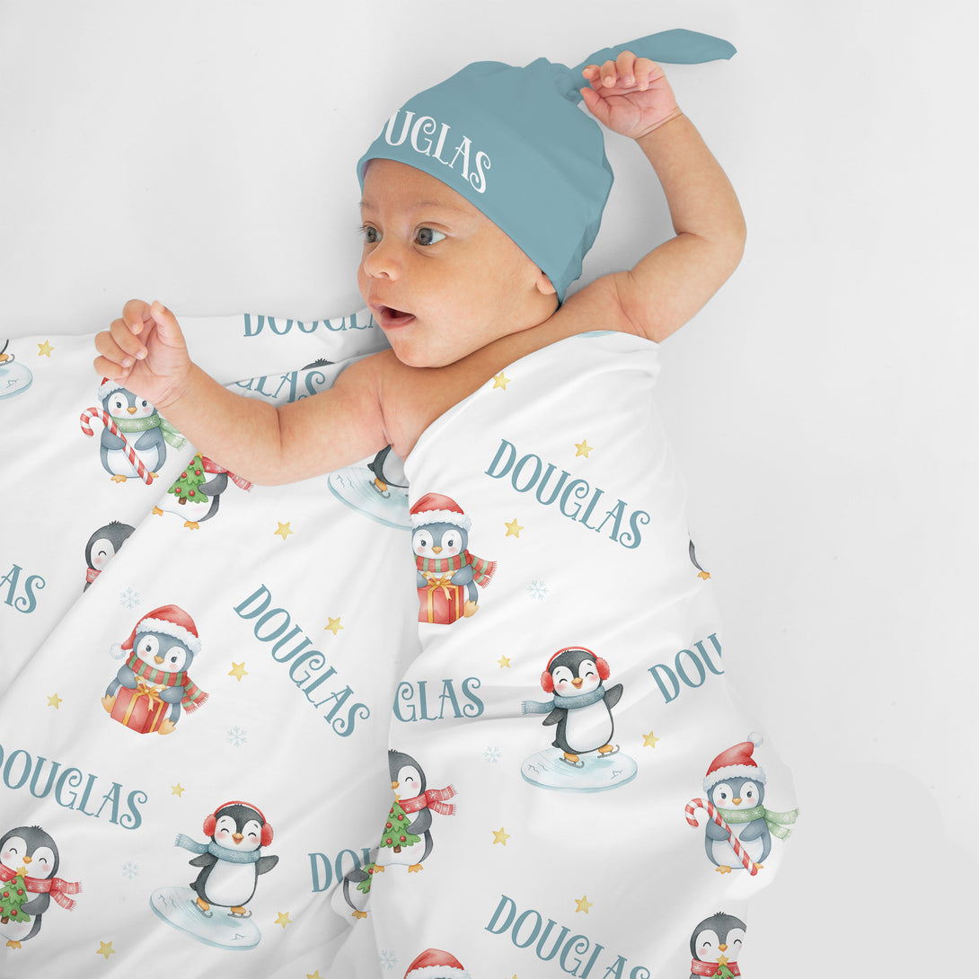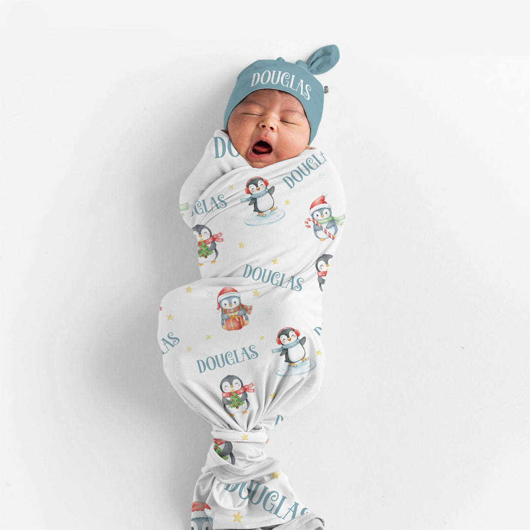 Snow Penguin Personalized Swaddle Blanket