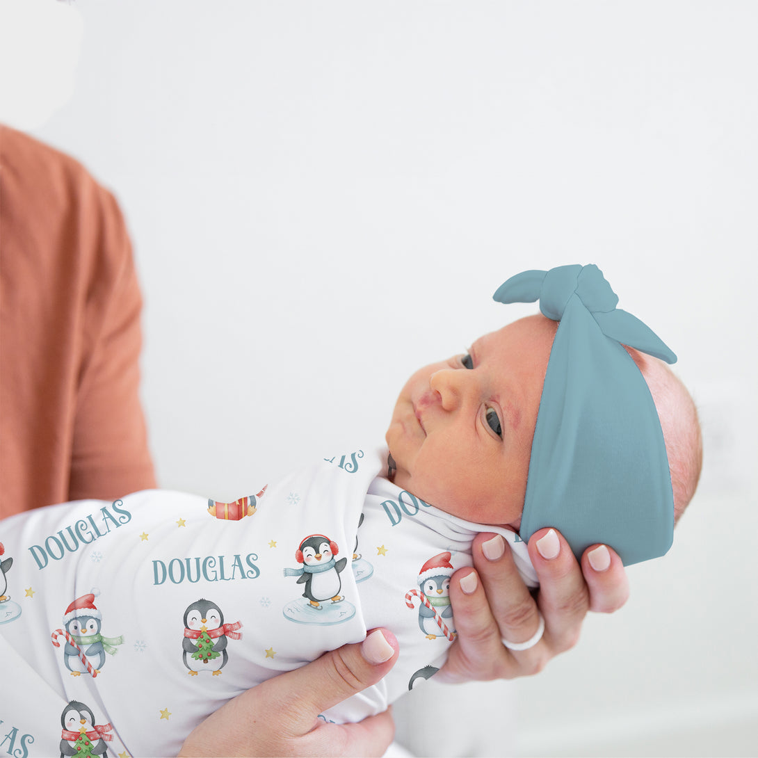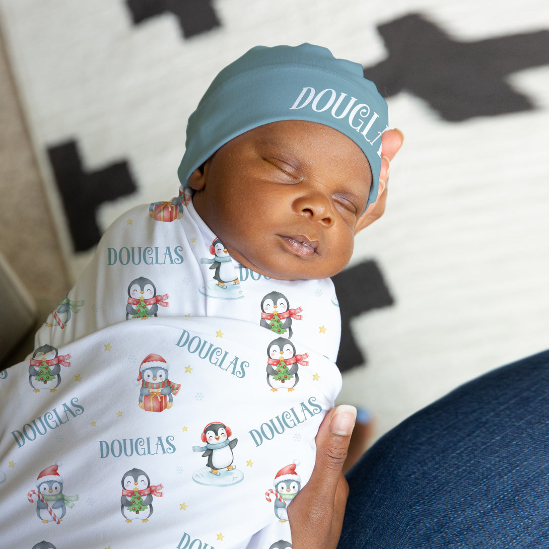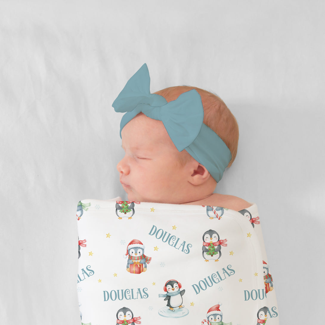 Snow Penguin Personalized Swaddle Blanket