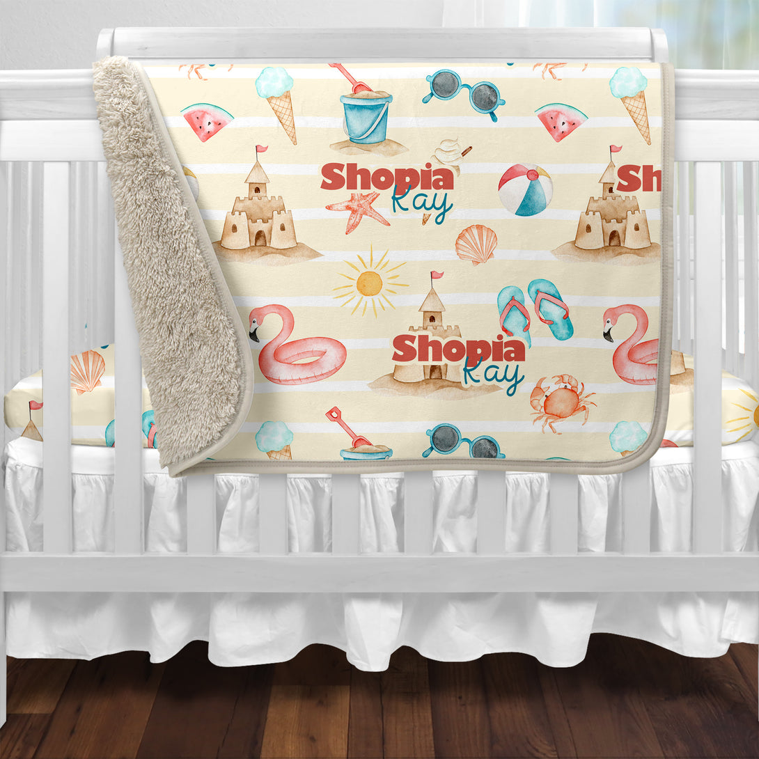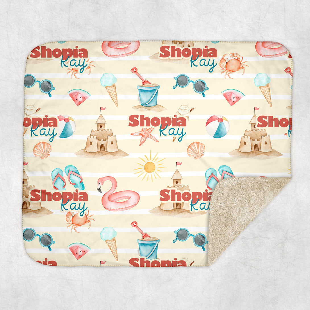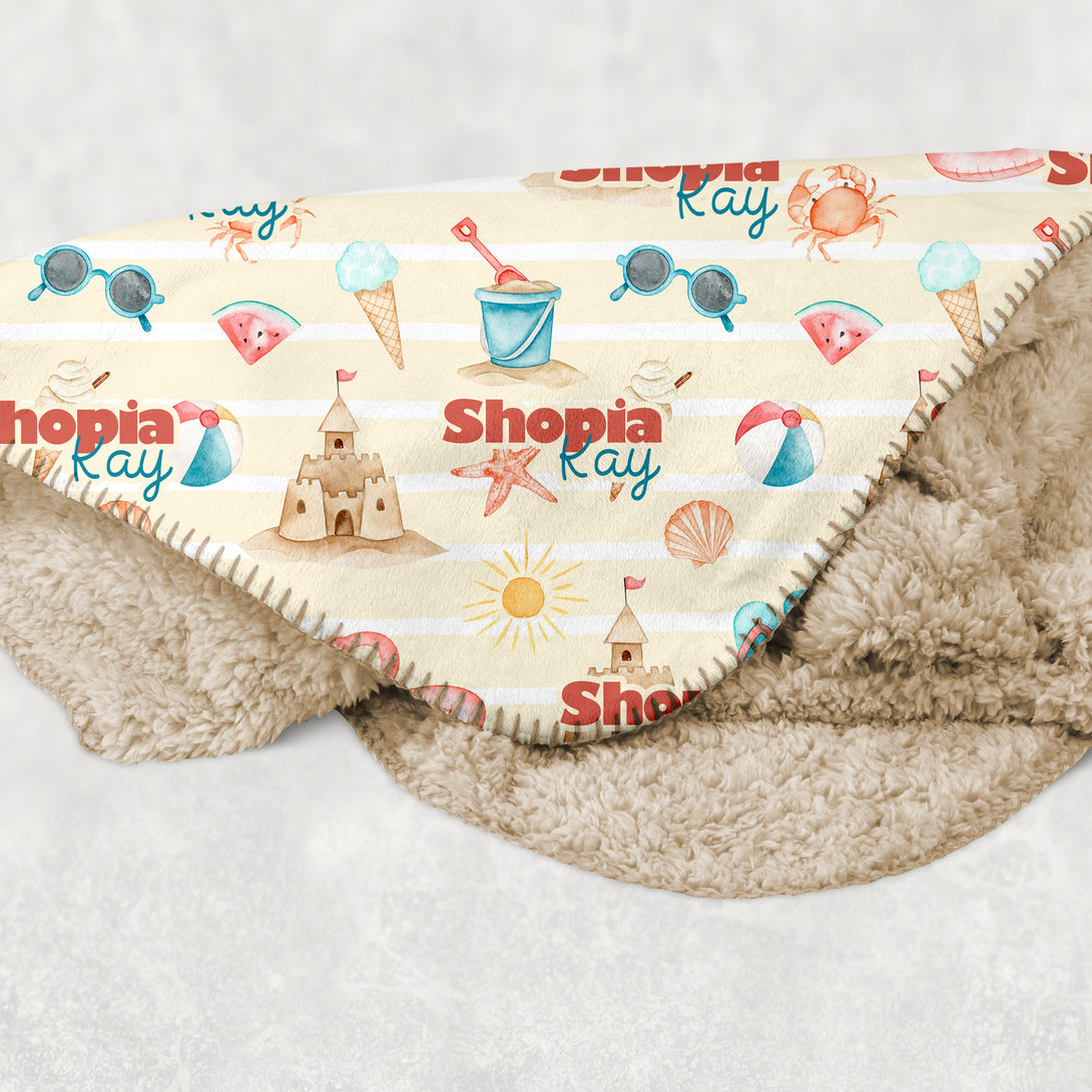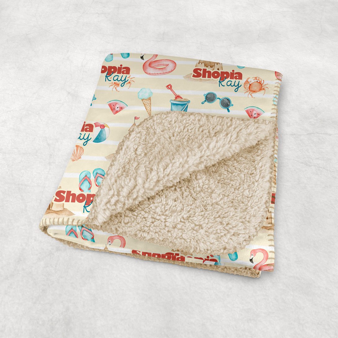 - Material: Minky style fleece with sherpa lining. Whip stitch edging, super-soft sherpa lining