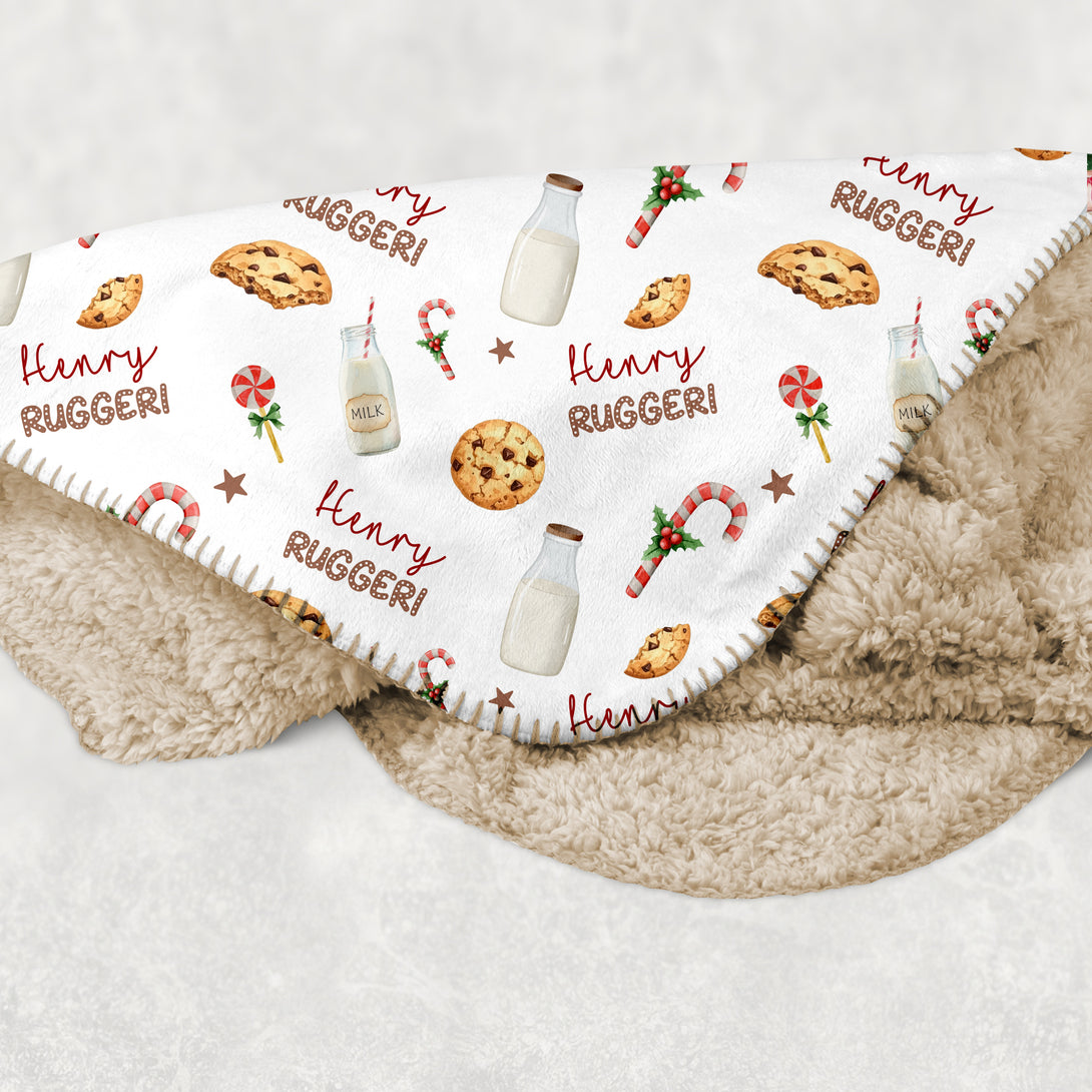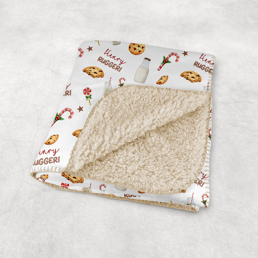 - Material: Minky style fleece with sherpa lining. Whip stitch edging, super-soft sherpa lining