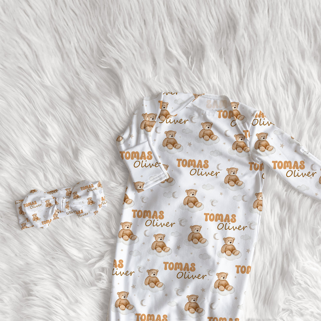 Teddy Bear Personalized Newborn Sleep Gown