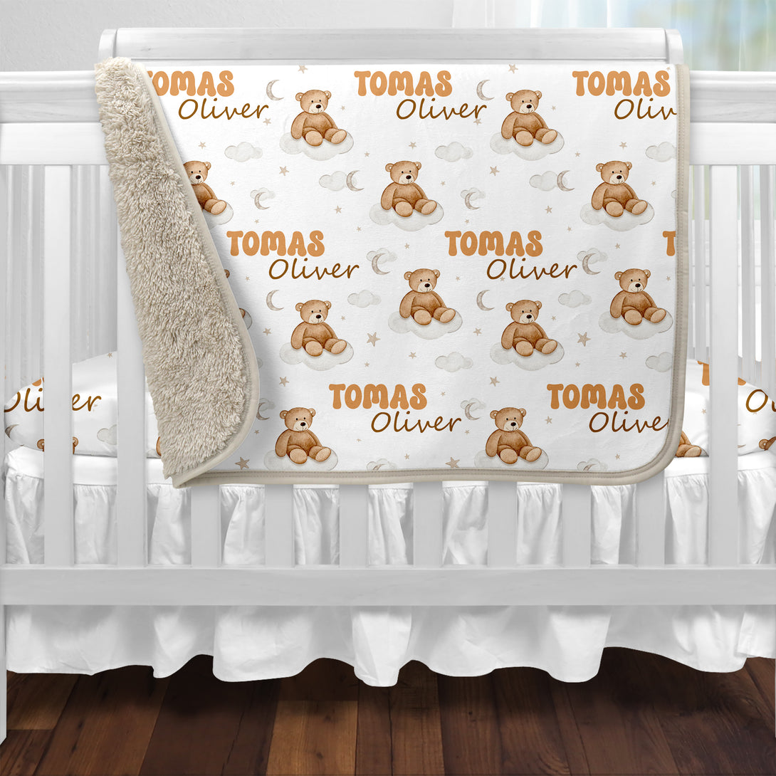 - Material: Minky style fleece with sherpa lining. Whip stitch edging, super-soft sherpa lining