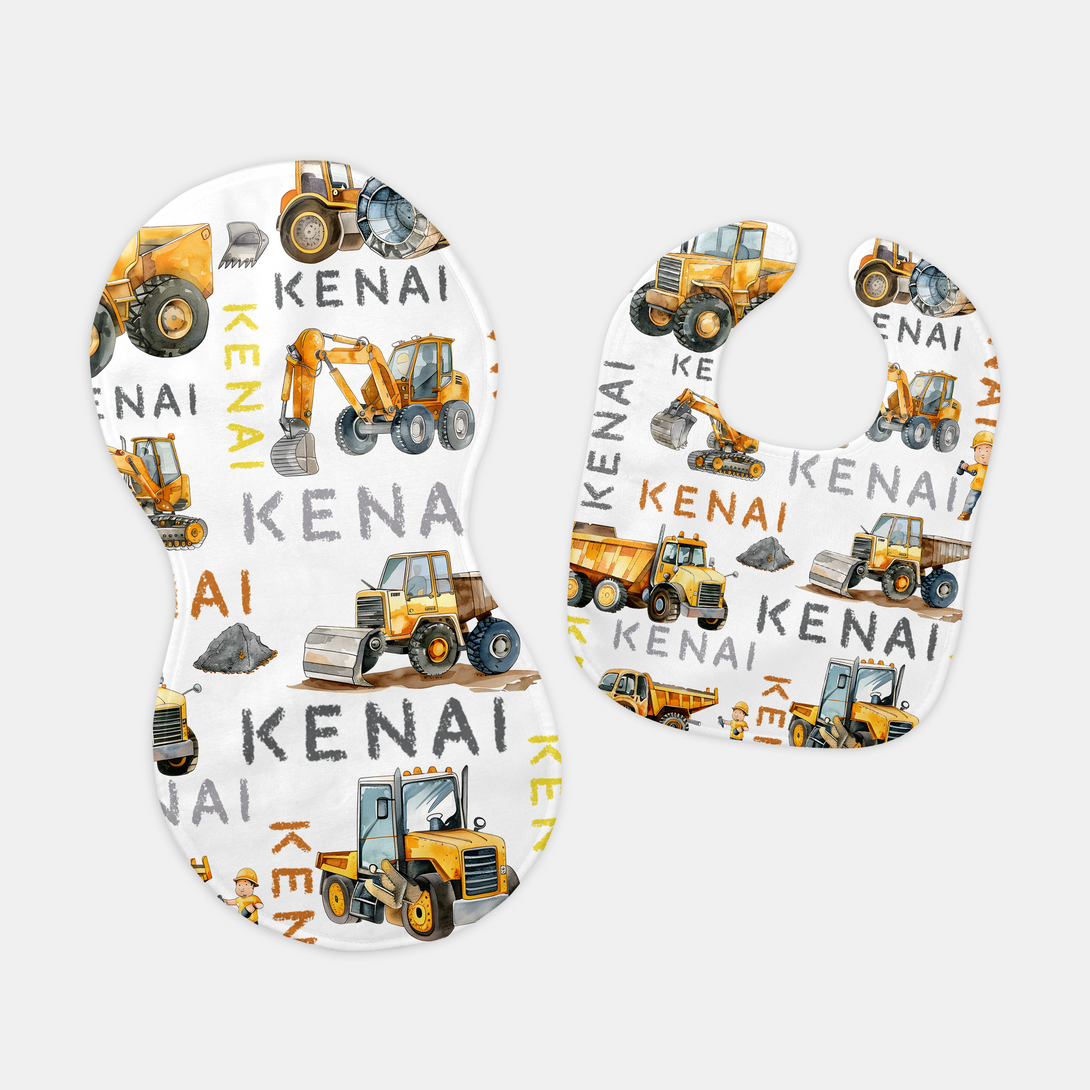 Truck Personalized Bib and Burp Cloth Set