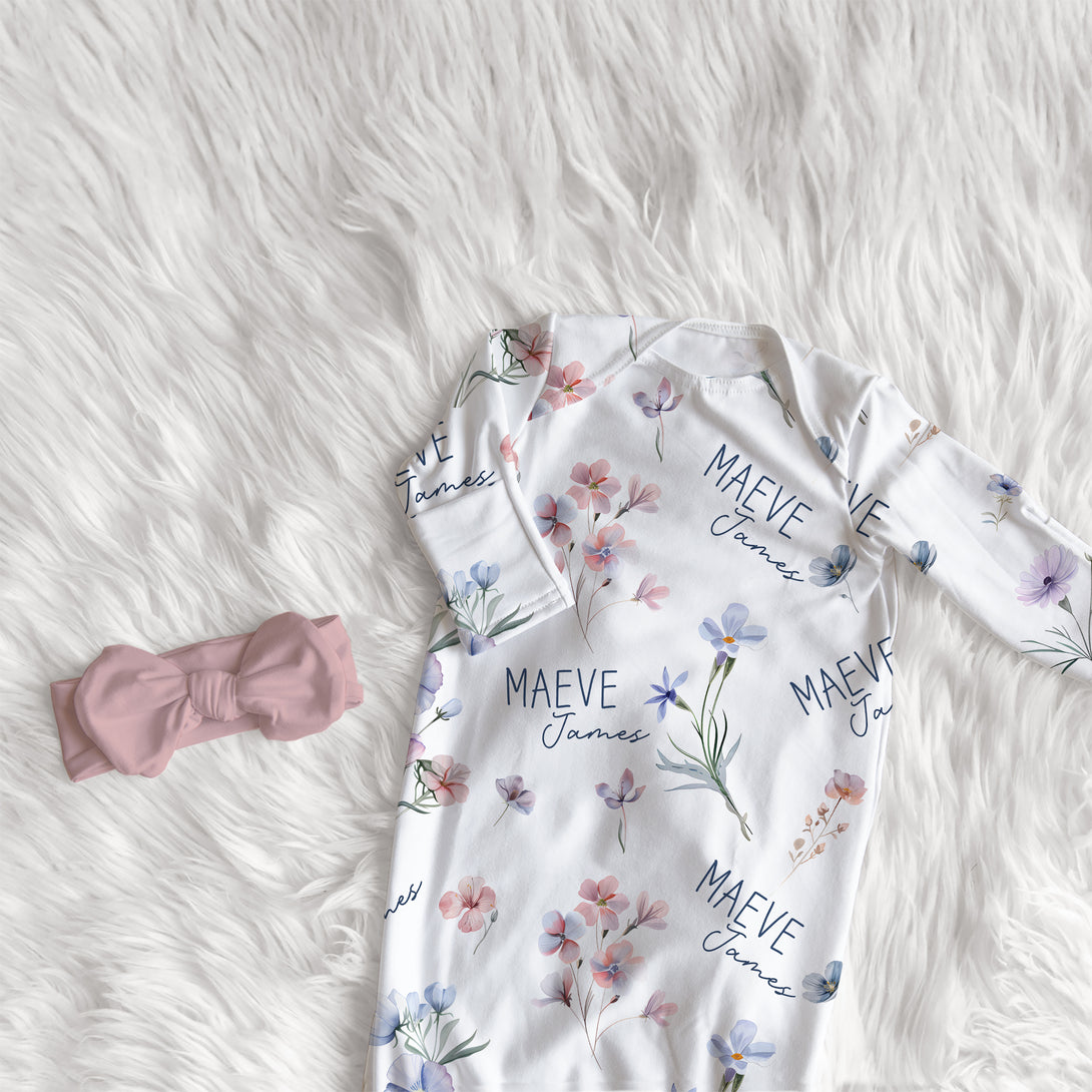 Pretty WildFlower Personalized Newborn Sleep Gown