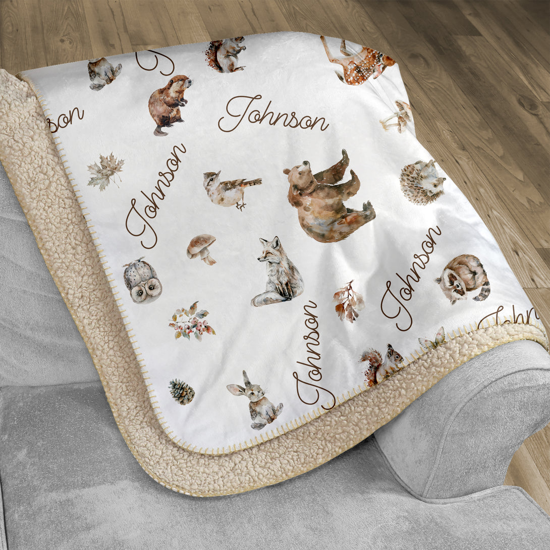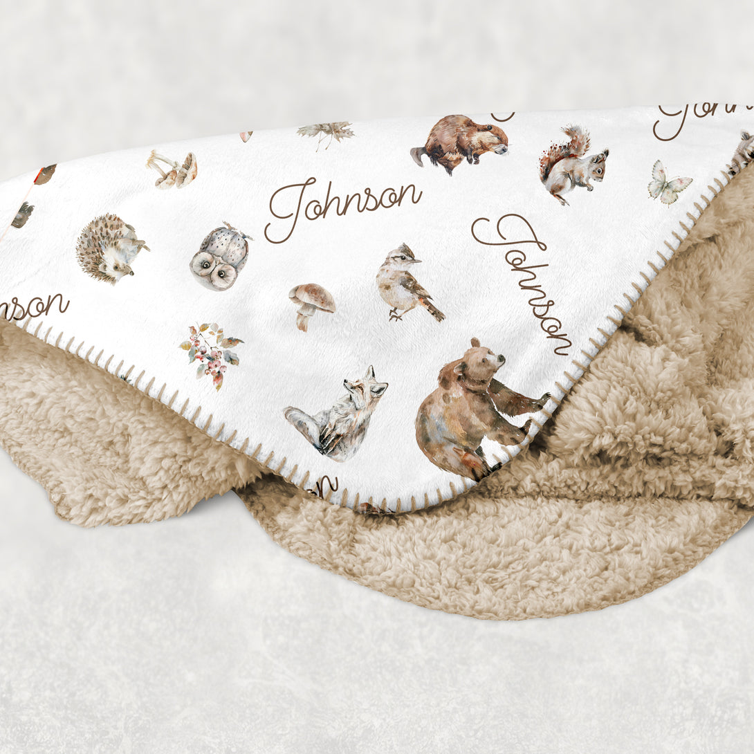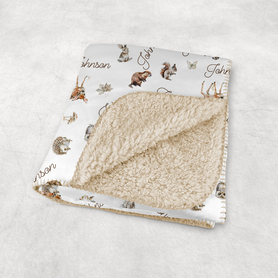 - Material: Minky style fleece with sherpa lining. Whip stitch edging, super-soft sherpa lining