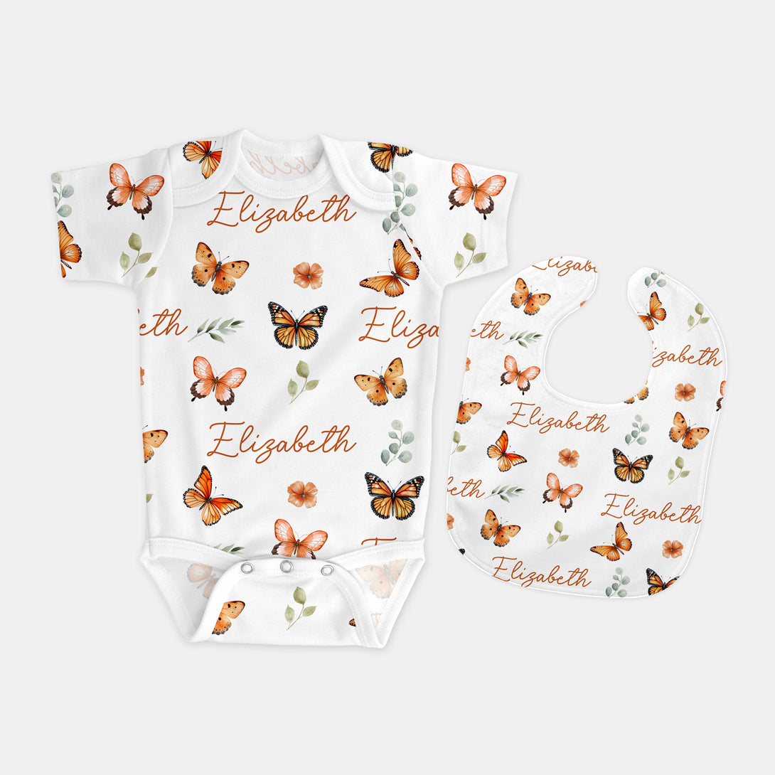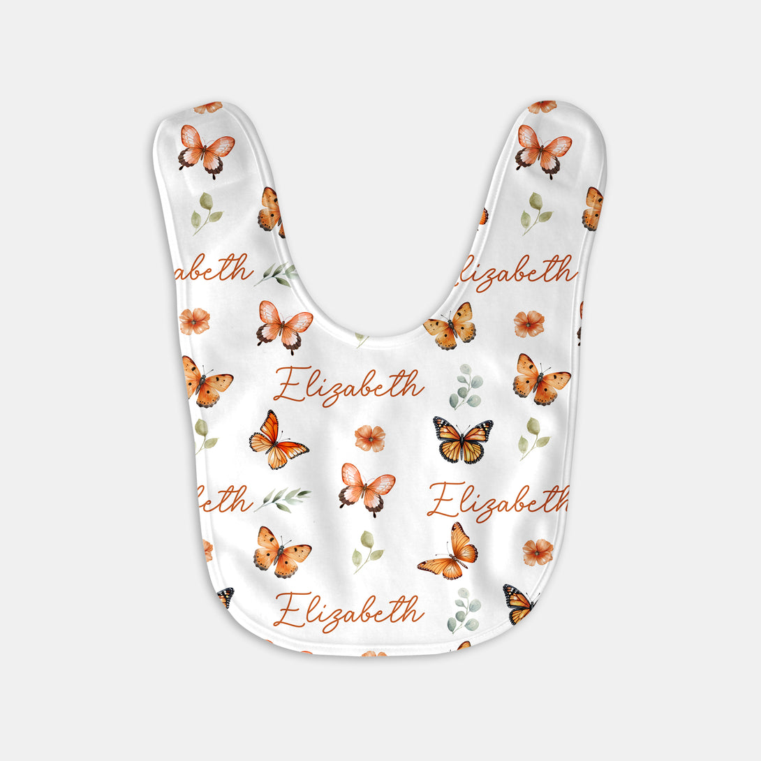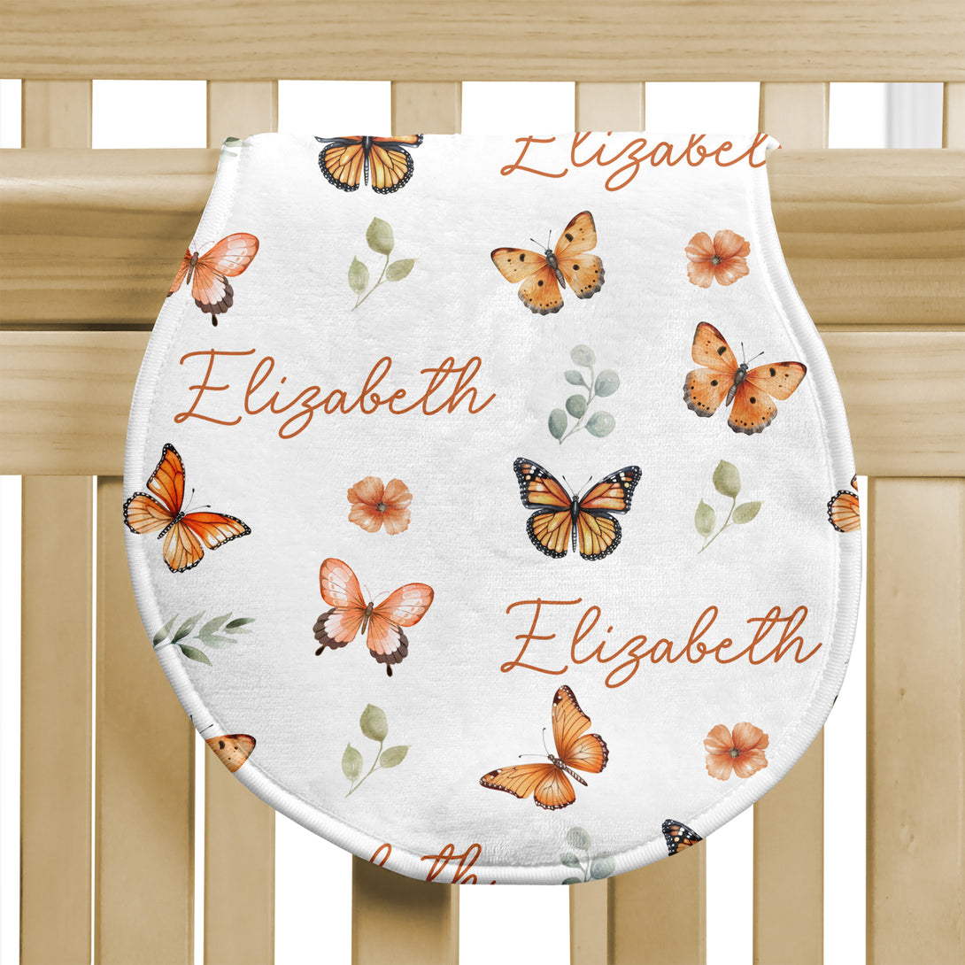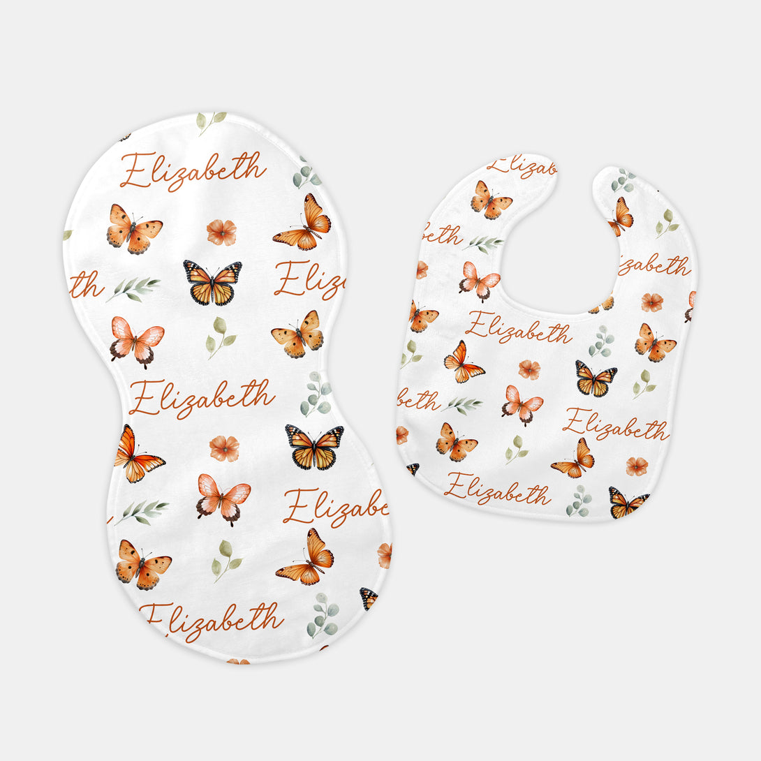Orange Butterfly Personalized Bib and Burp Cloth Set