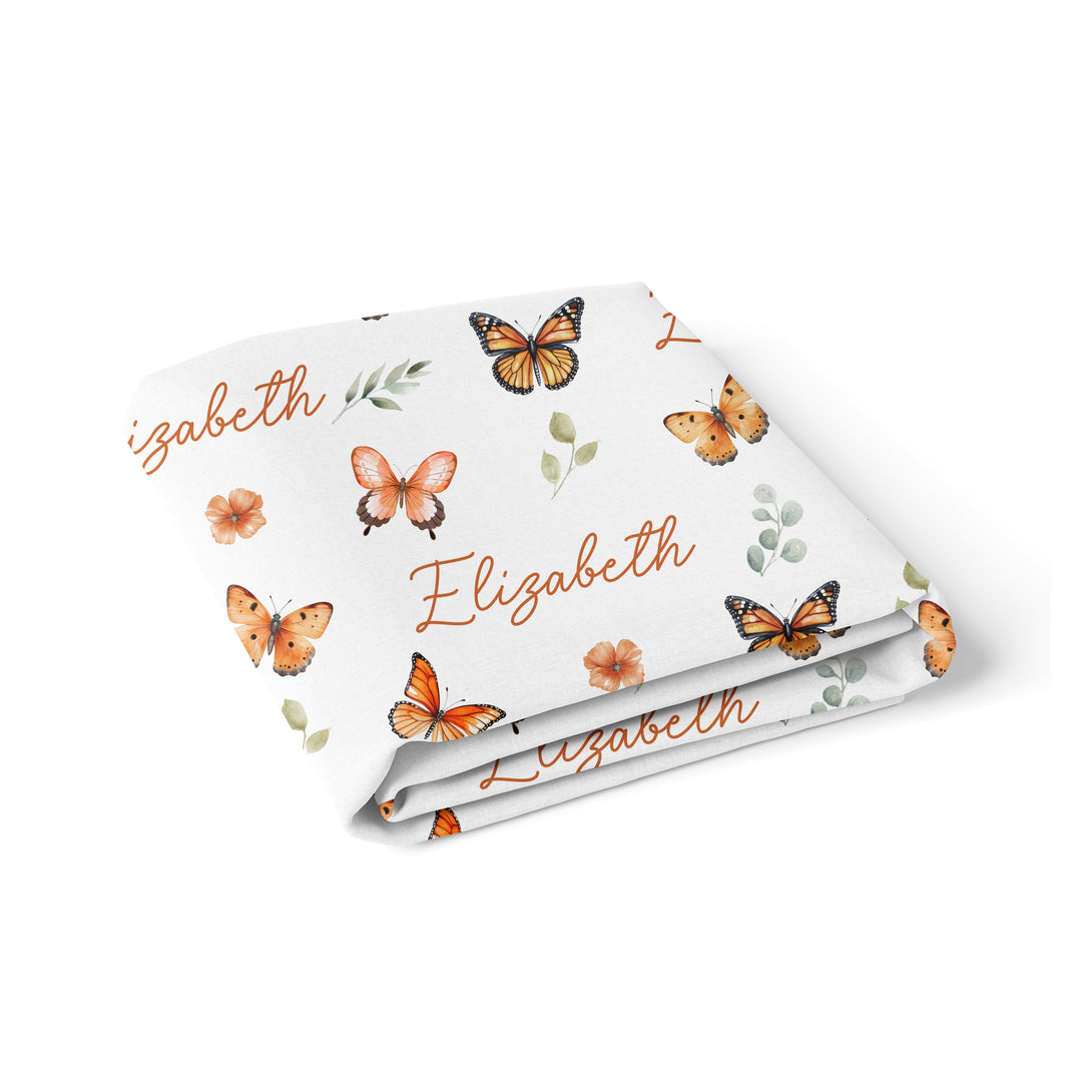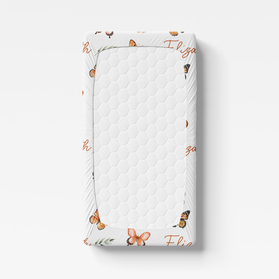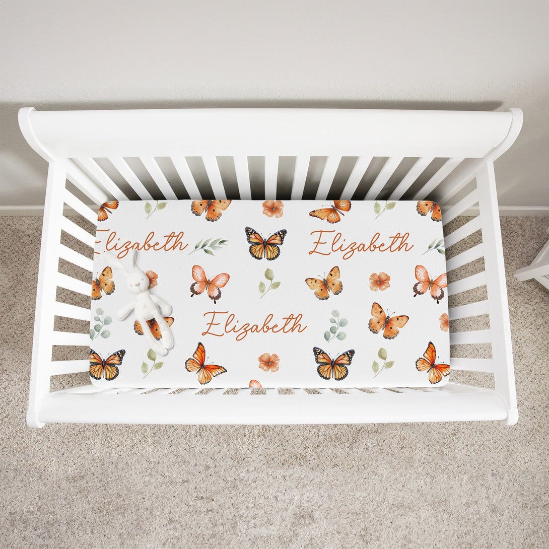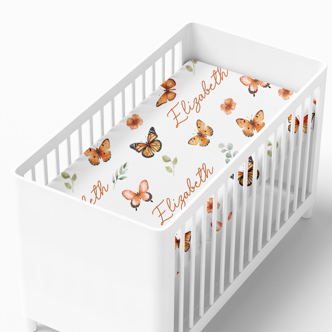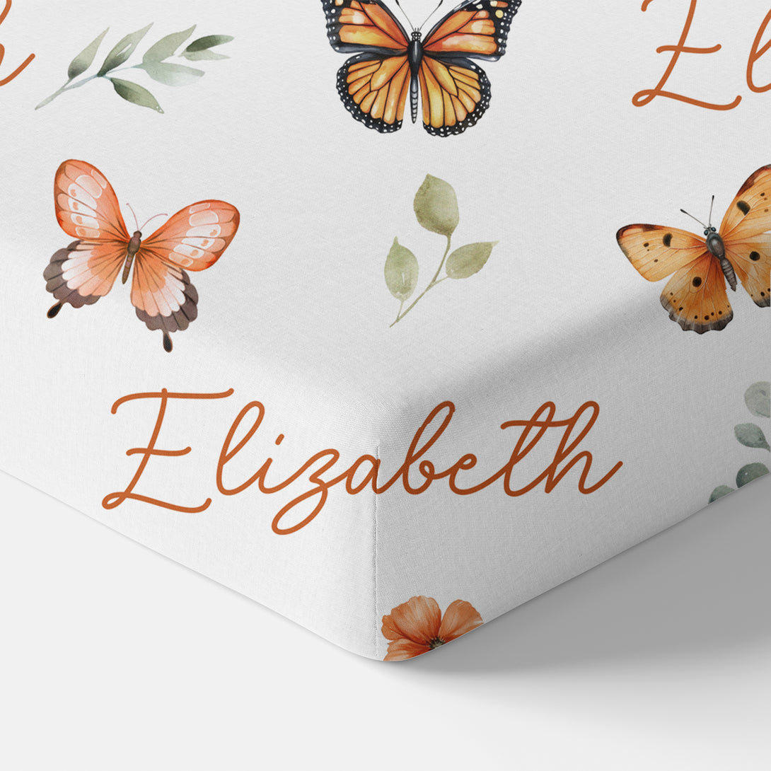 Orange Butterfly Personalized Crib Sheet